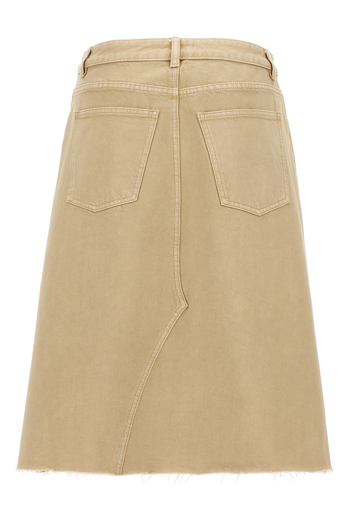 'Deconstructed Midi' cotton denim skirt with zip and button closure, five pockets, trompe l'oeil split detail on the front.