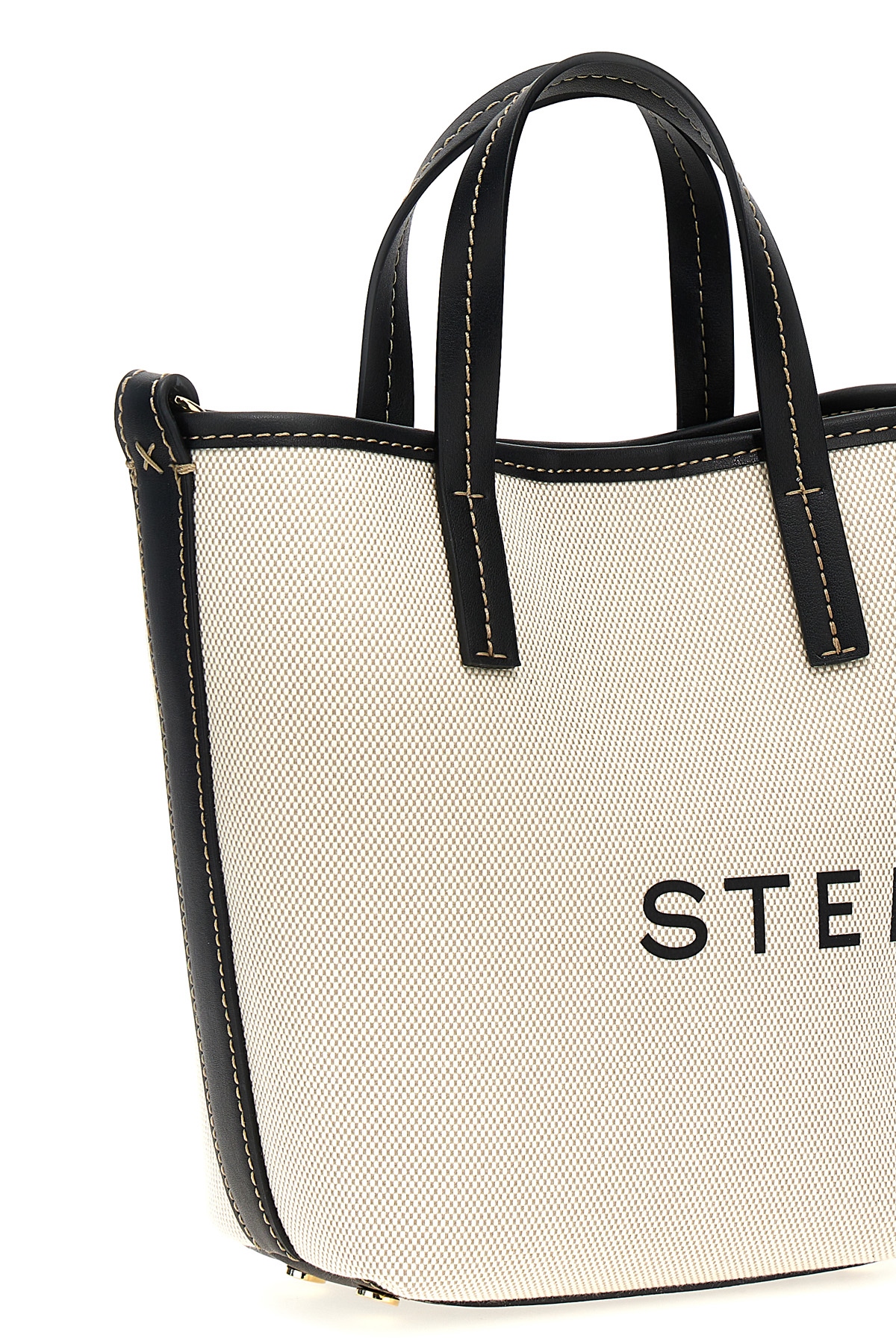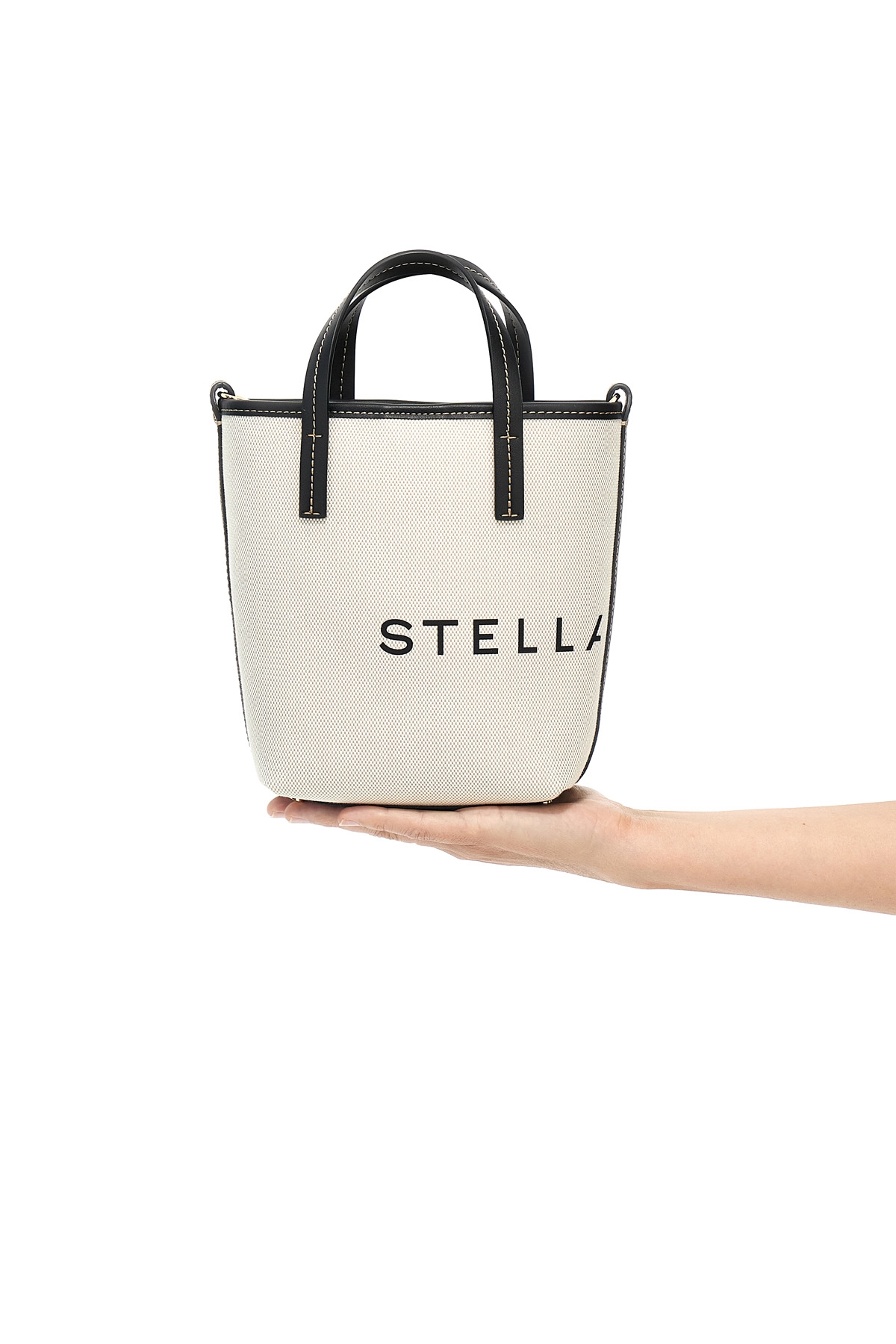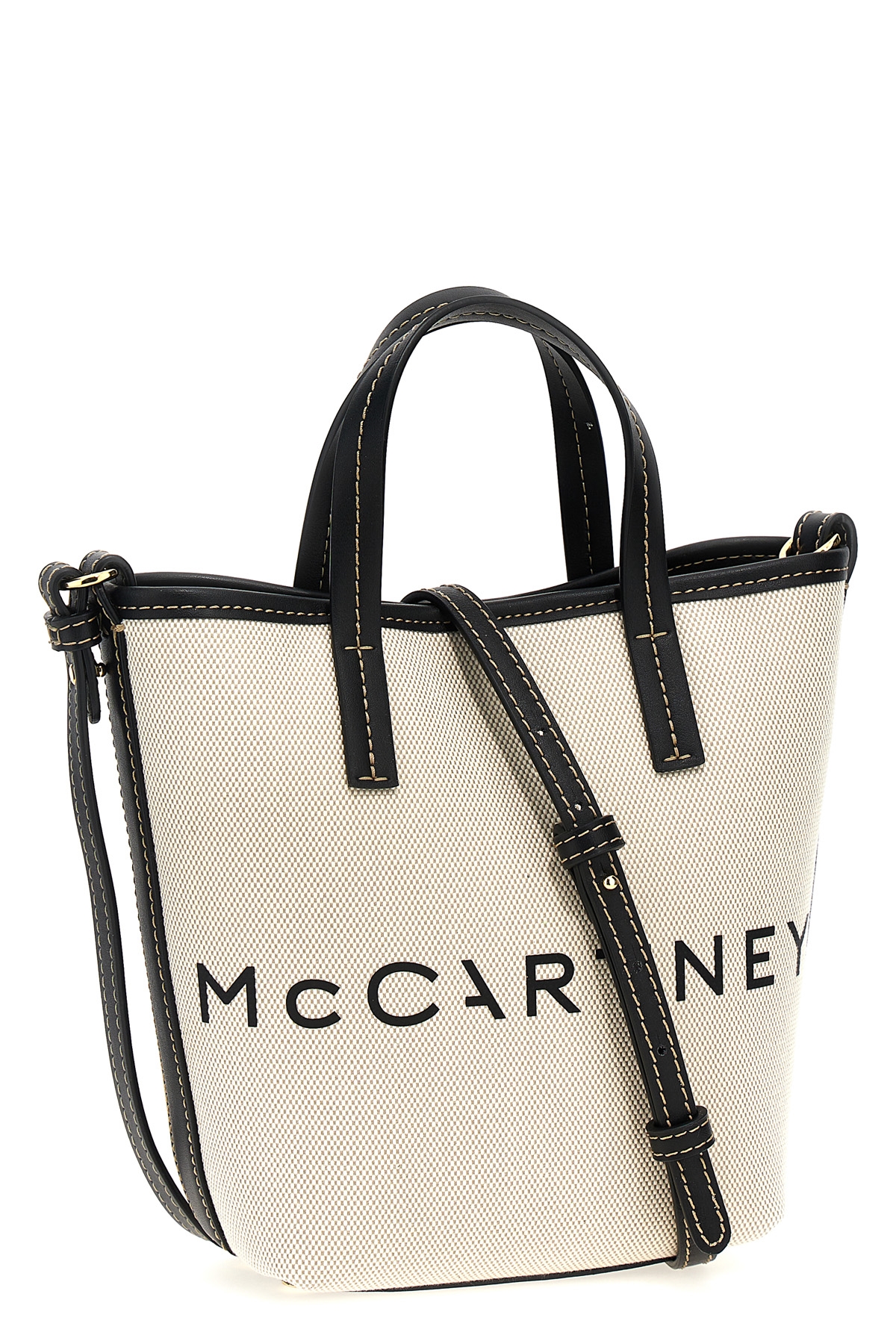 Canvas shopping bag with VEGEA fabric details, logo print, double handle, adjustable and removable shoulder strap.