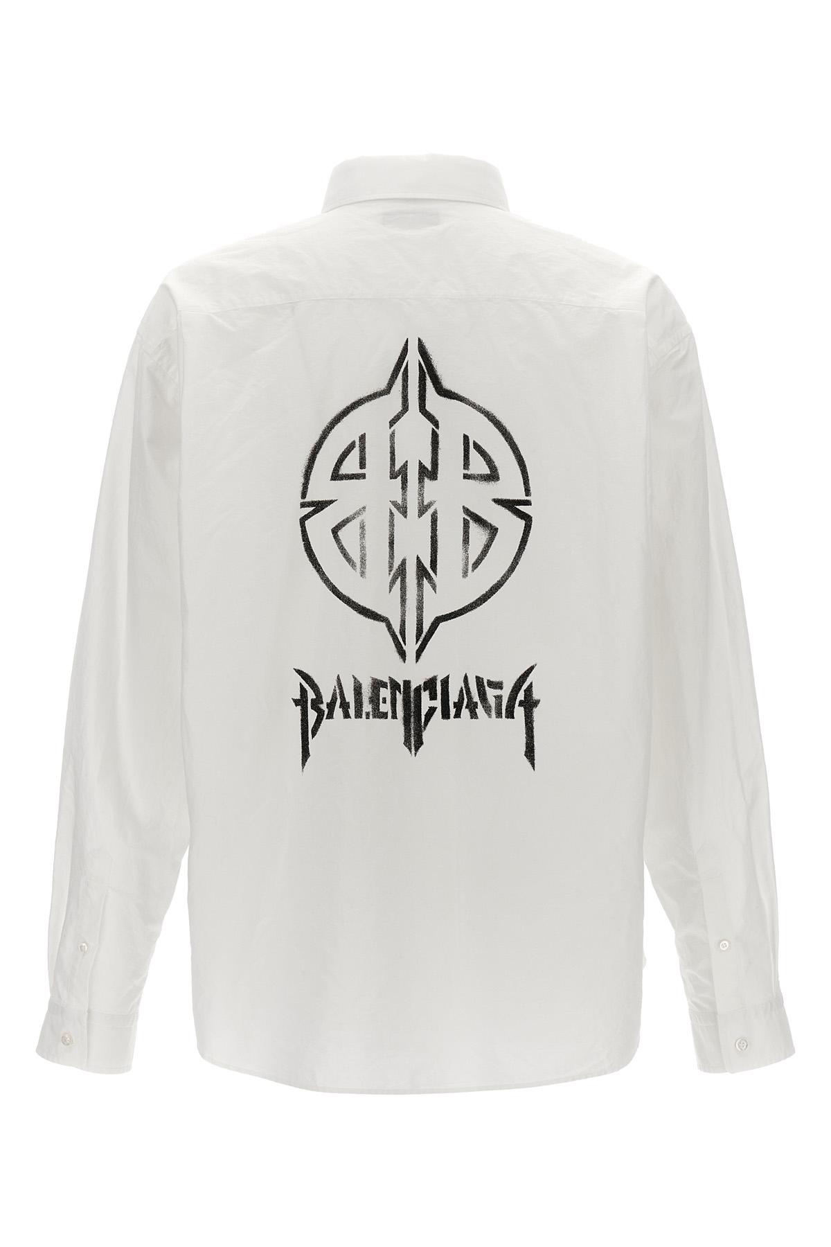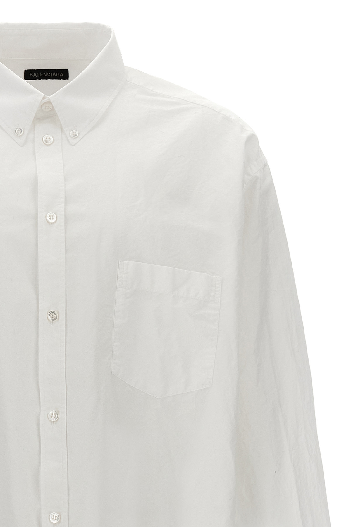 Wrinkled-effect cotton shirt, back logo print, front pocket, button closure, long cuffed sleeves.