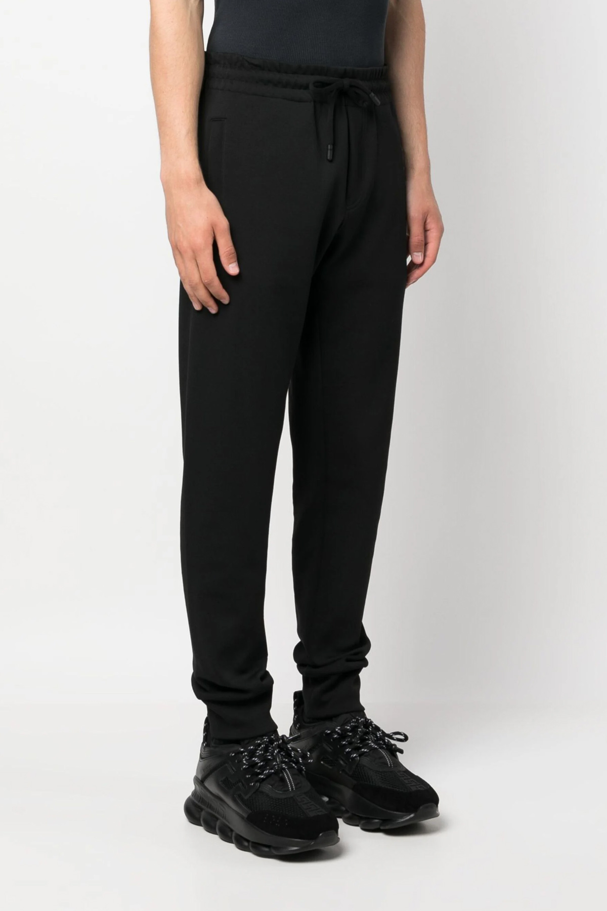 Black sicily' cotton joggers with drawstring at the waist and cuffed leg bottoms.