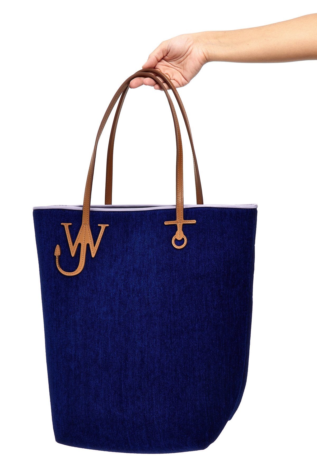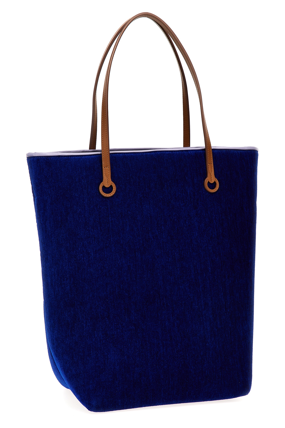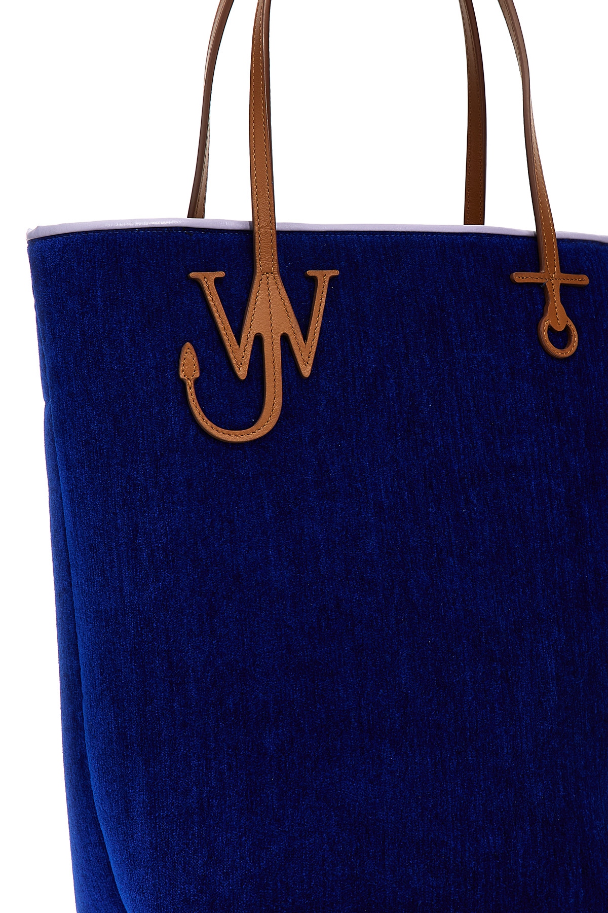 Tall Anchor Tote' chenille shopping bag with leather details, double handle with logo, snap button closure, inner pocket.