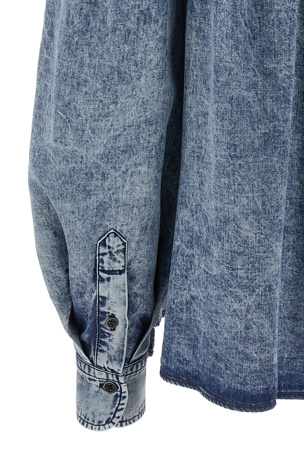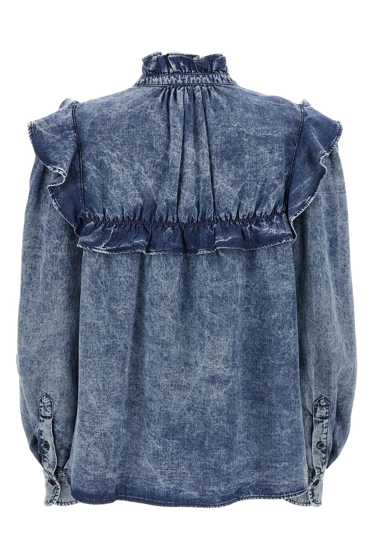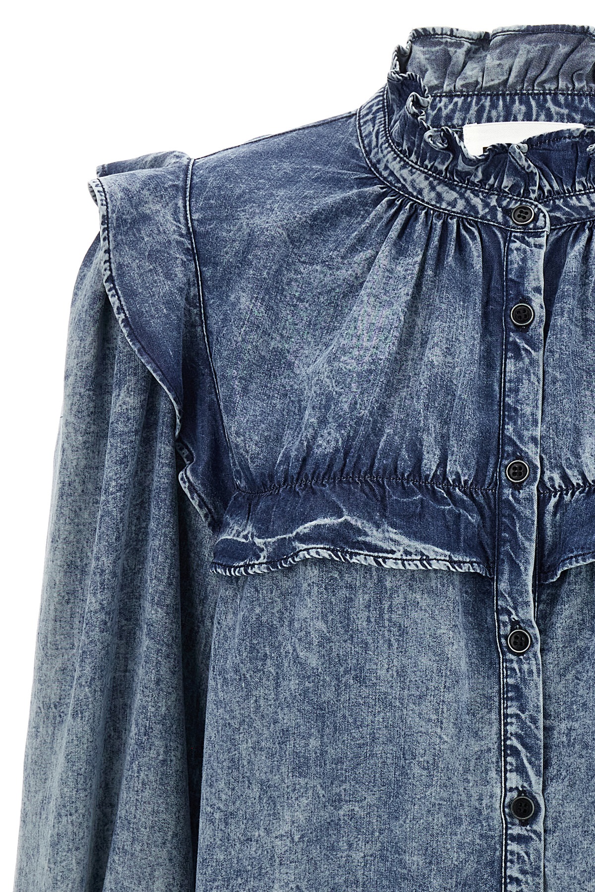 'Idety' denim-effect fabric shirt with ruffle detail, button closure, long cuffed sleeves.