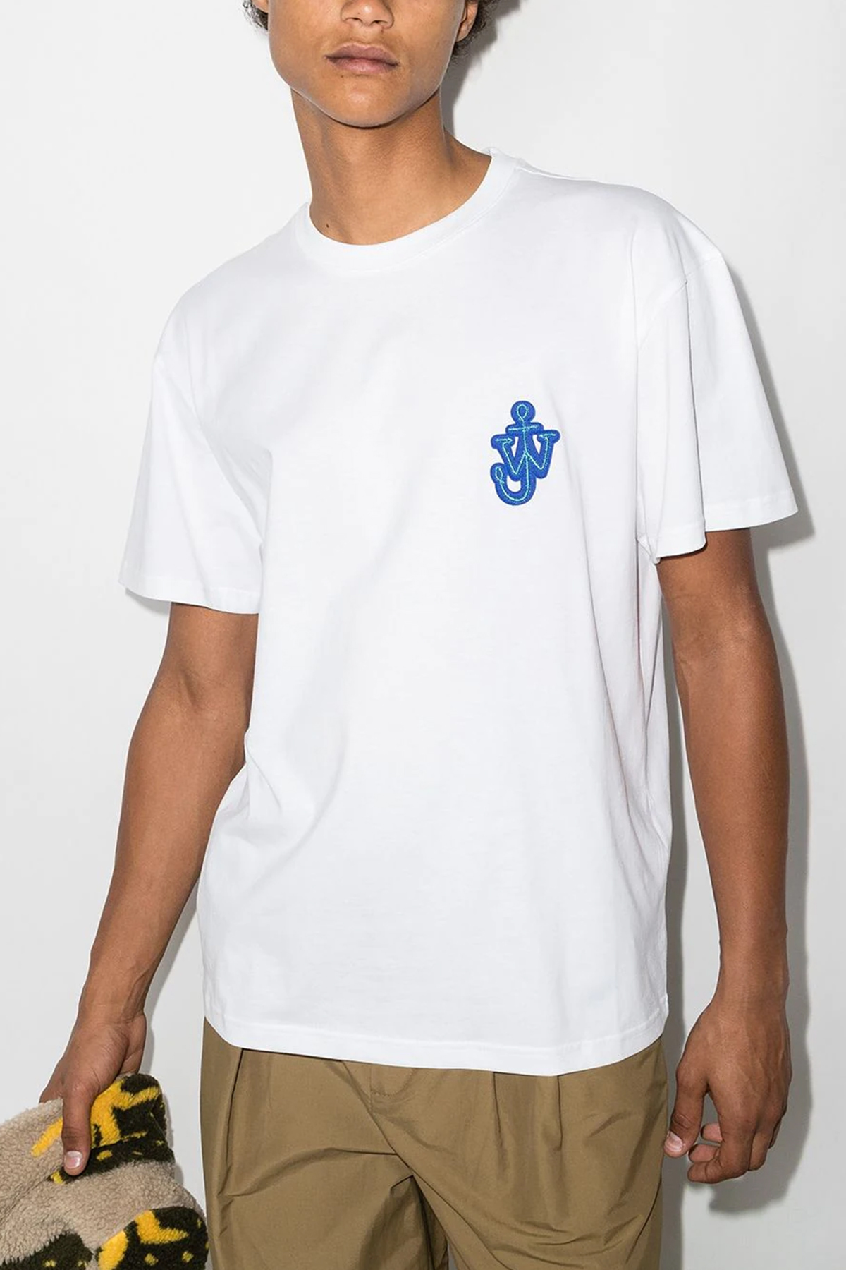 Cotton crew neck t-shirt with contrast embroidered 'Anchor' patch and short sleeves.