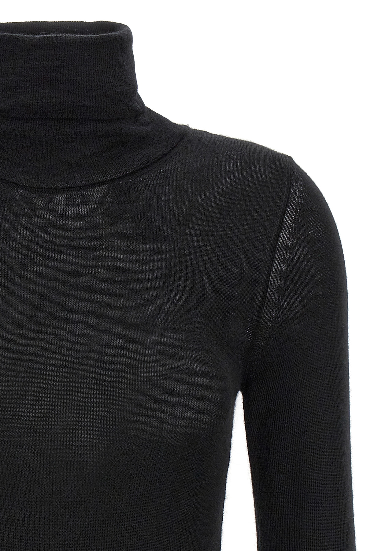 Cashmere and silk turtleneck sweater, high neck, long sleeves.
