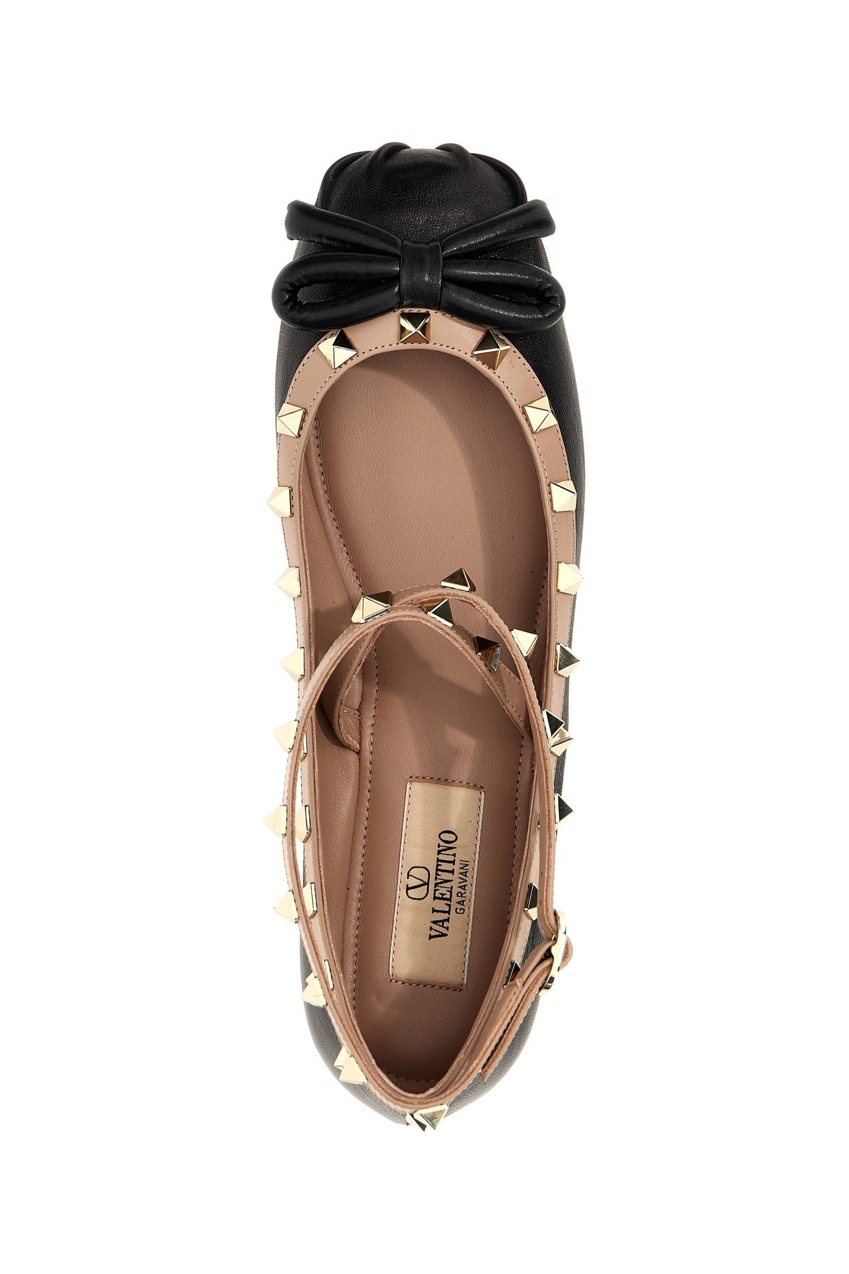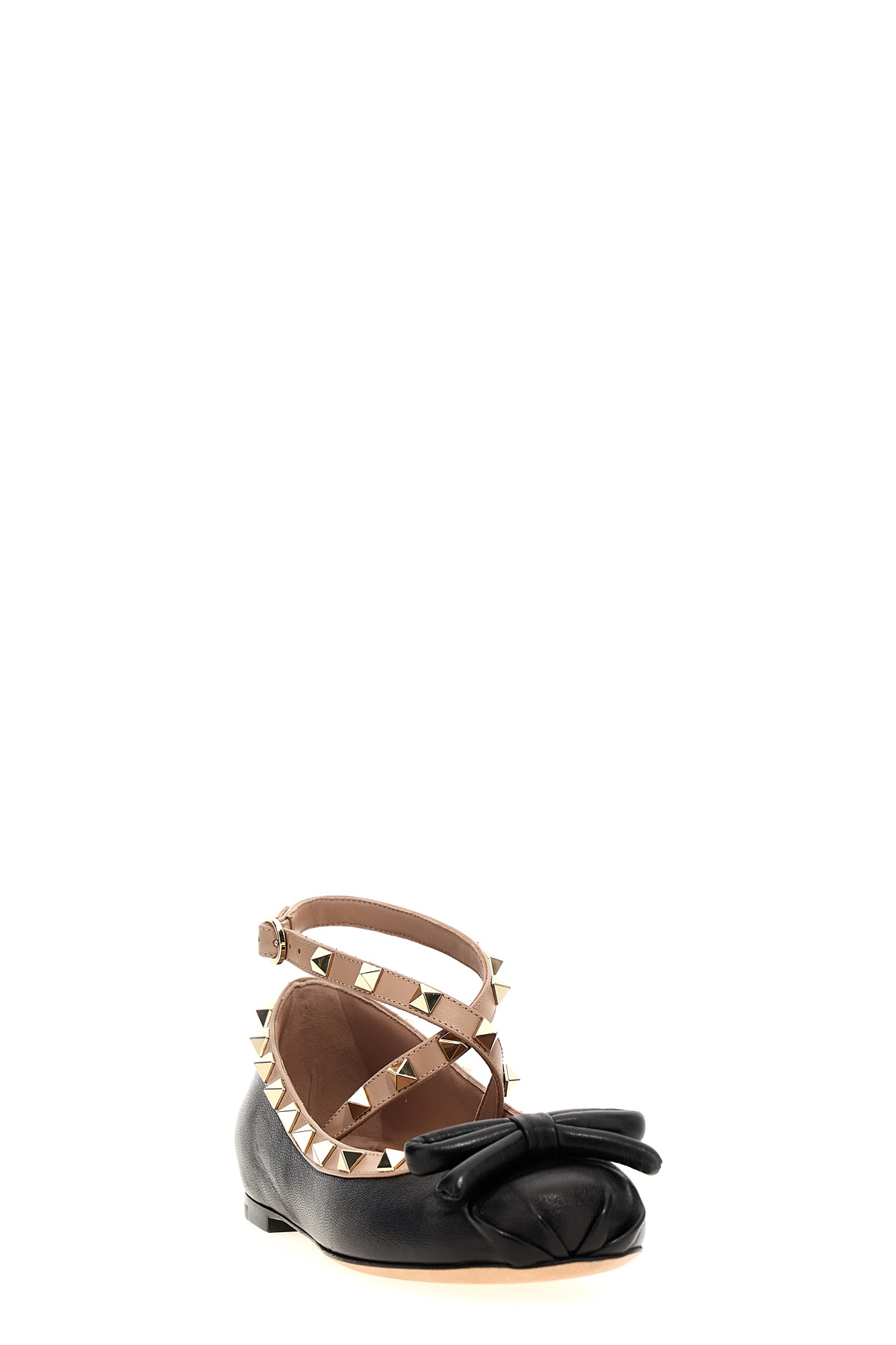 'Rockstud' nappa ballet flat, front bow applique, studs, ankle strap.