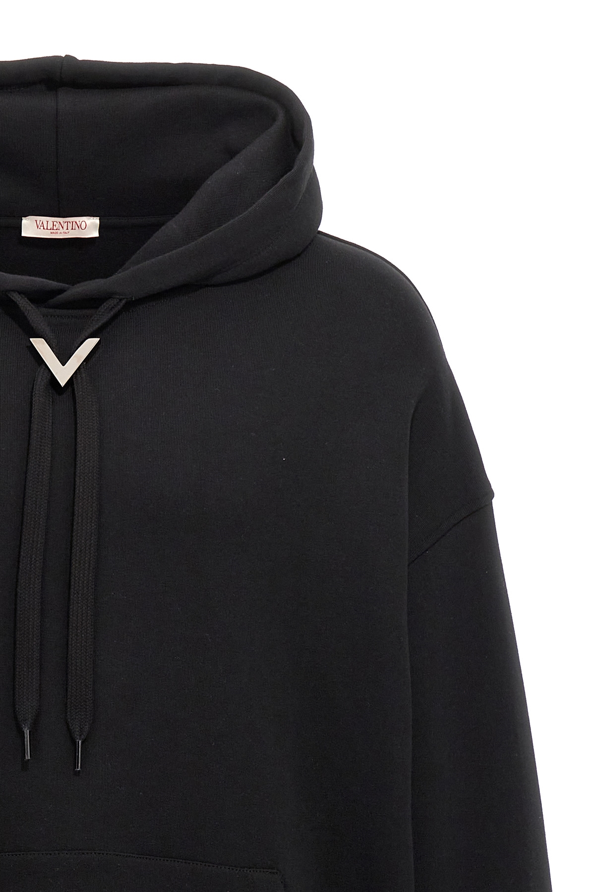 Cotton hoodie with kangaroo pocket, drawstrings with metal 'V Detail' detail, long cuffed sleeves.
