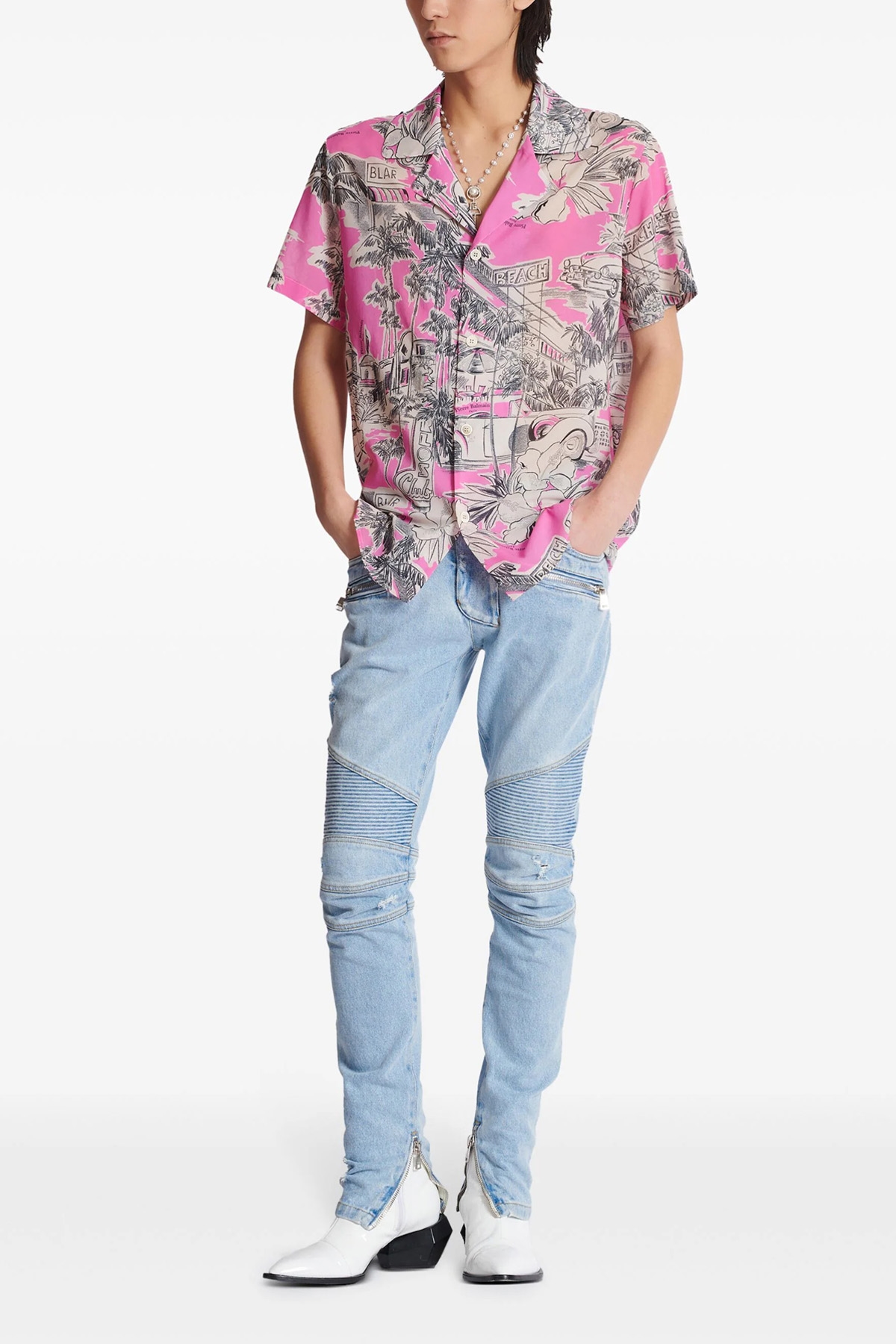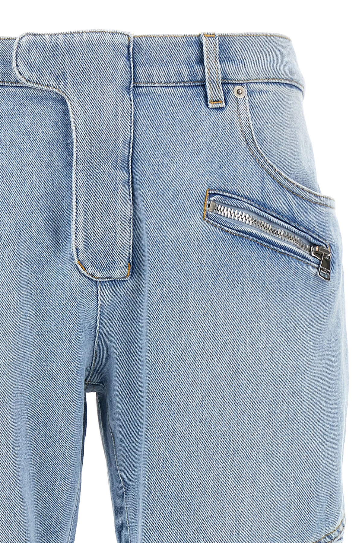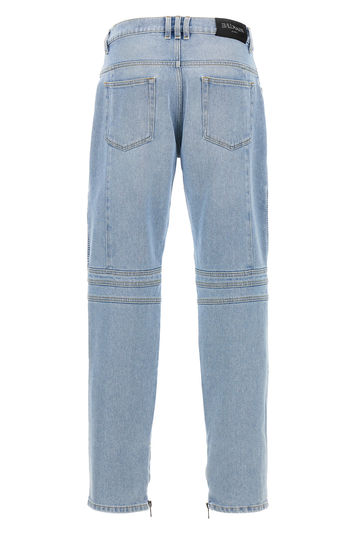'Biker' stretch cotton denim jeans with used-effect details and pleats at the knees, zip and button closure, five pockets, back logo label, zip detail on the bottom of the leg.
