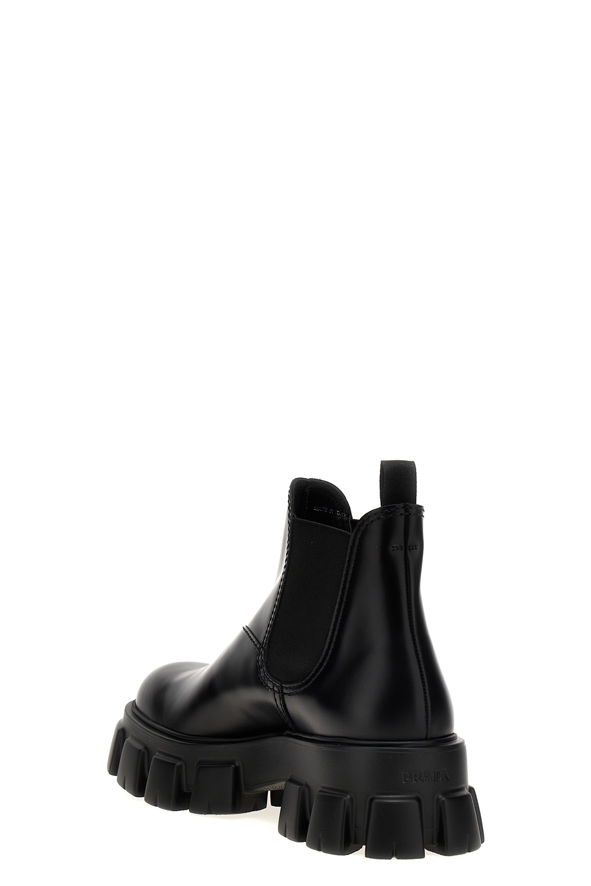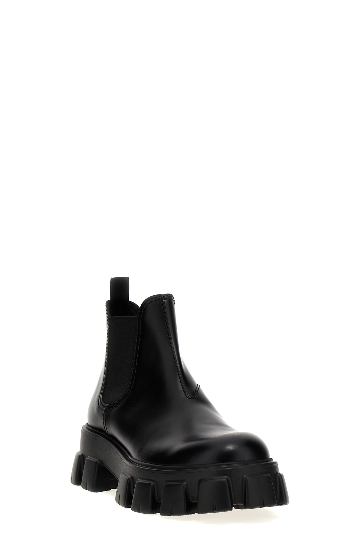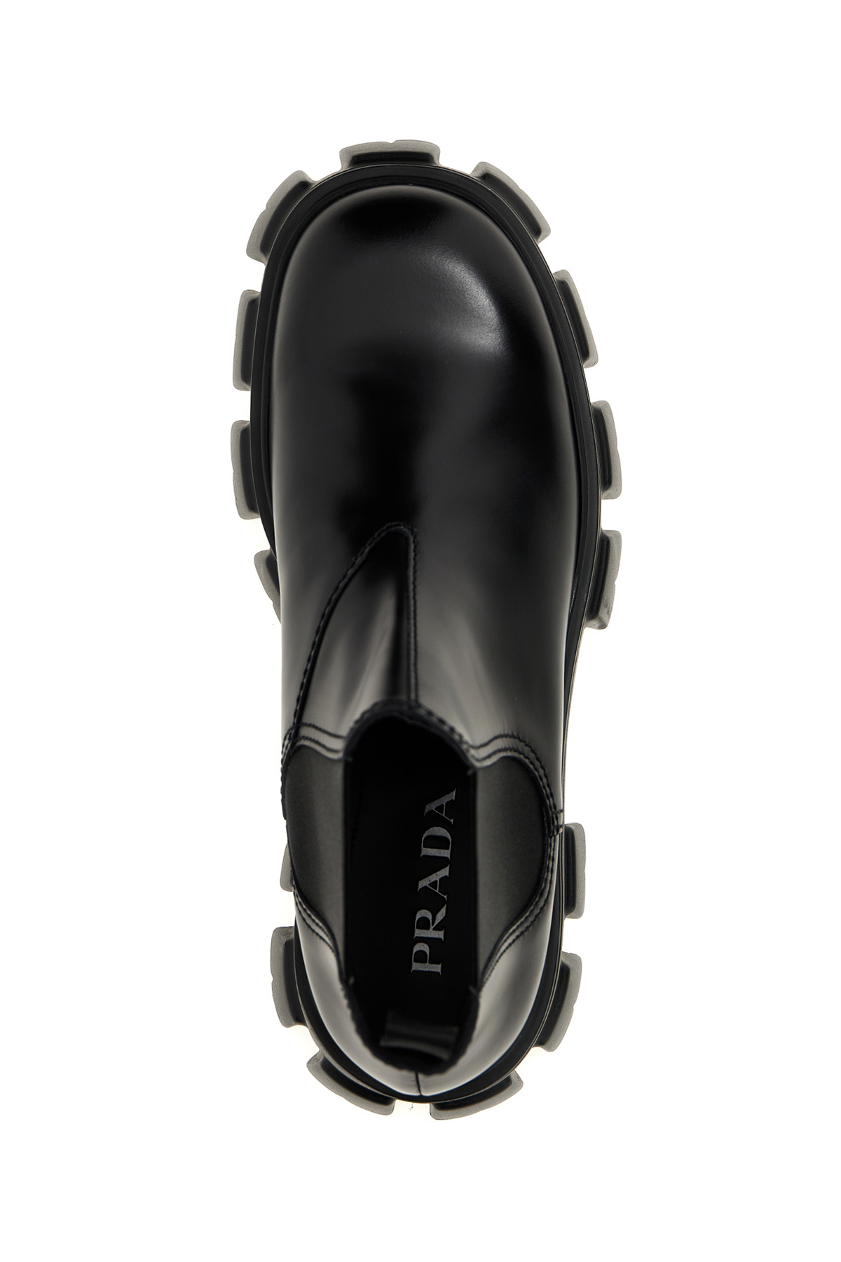 Brushed leather 'Monolith' chelsea boot, elastic ankle strap, ultralight oversize rubber sole.