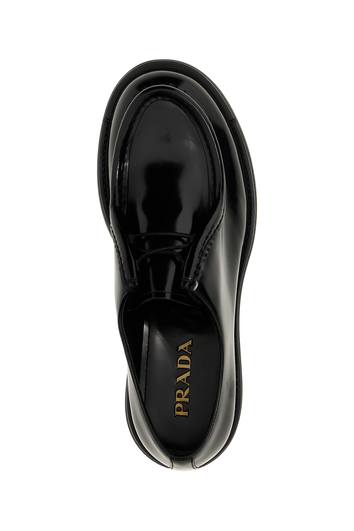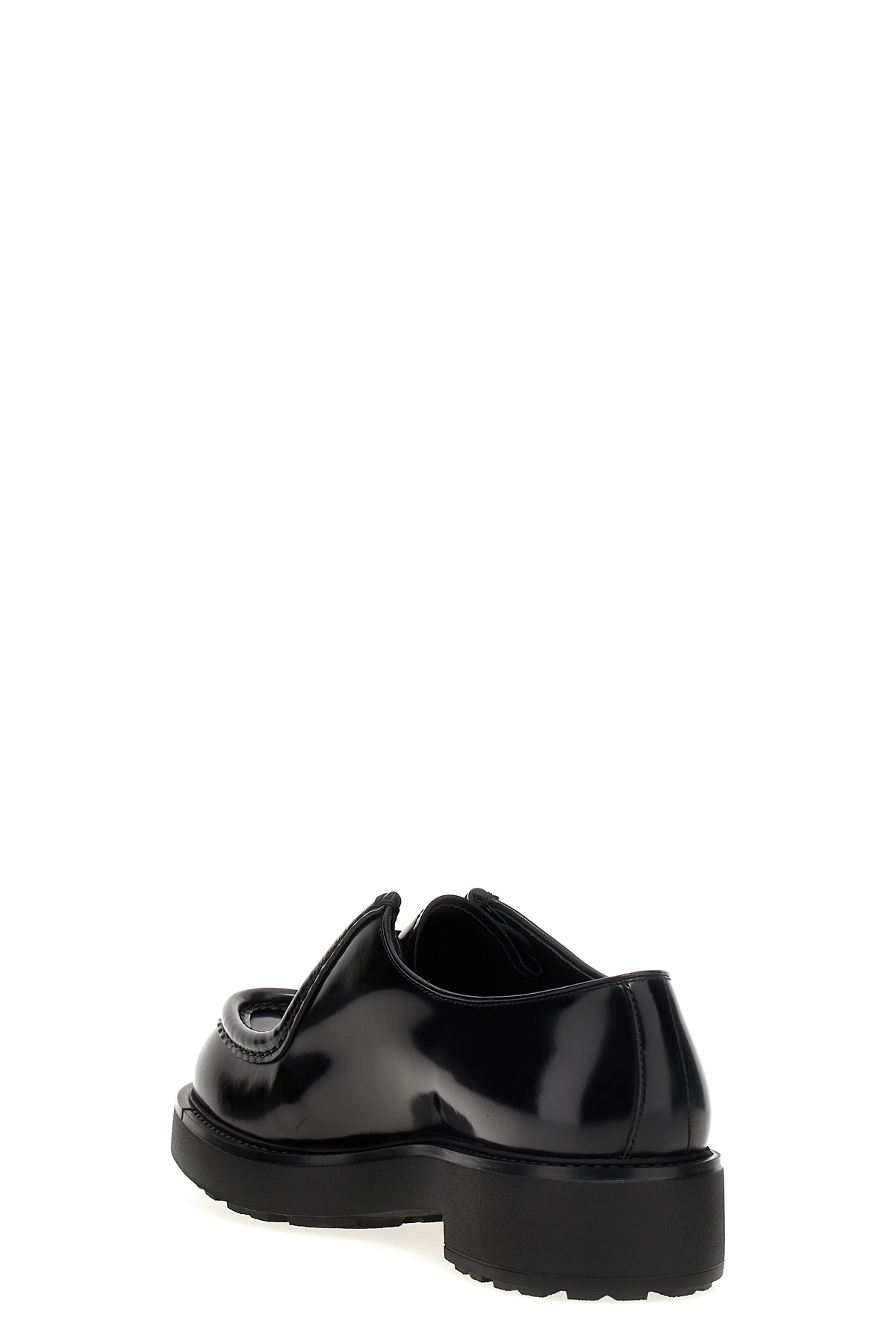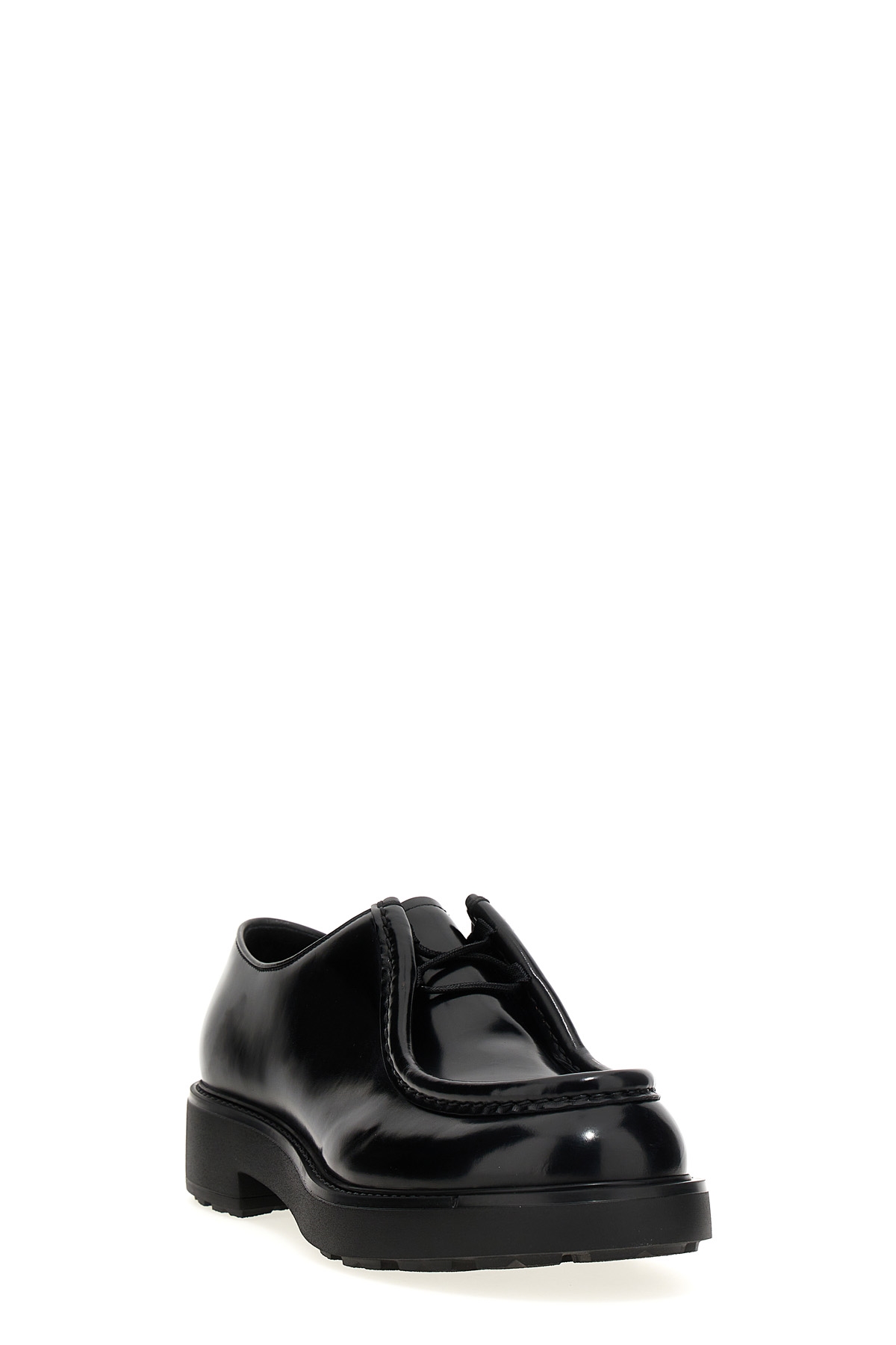 Brushed leather lace up shoes with lace closure and rubber sole.