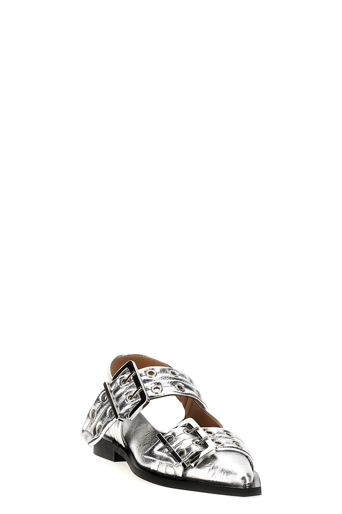 'Wide Belt Buckle' ballet flats in laminated fabric with straps and maxi buckles, leather sole. SUSTAINABLE: product made with recycled materials.