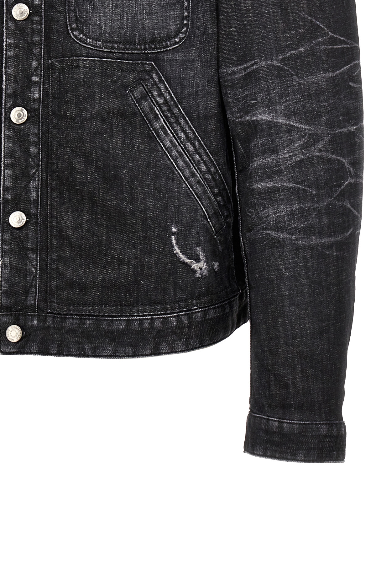 'Boxy Jean' cotton denim jacket with used-effect details, button closure, pockets, long cuffed sleeves.