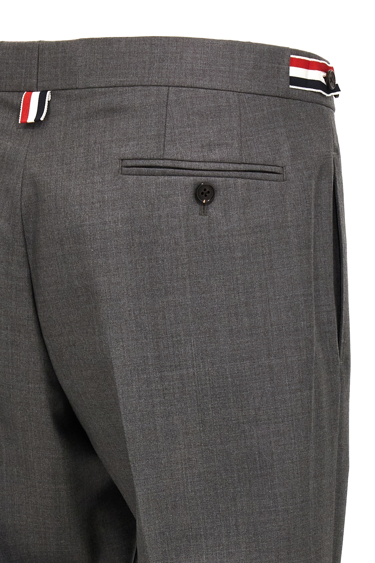 Super 1120s wool twill trousers, 'RWB' details, button and hook closure, pockets, low waist.