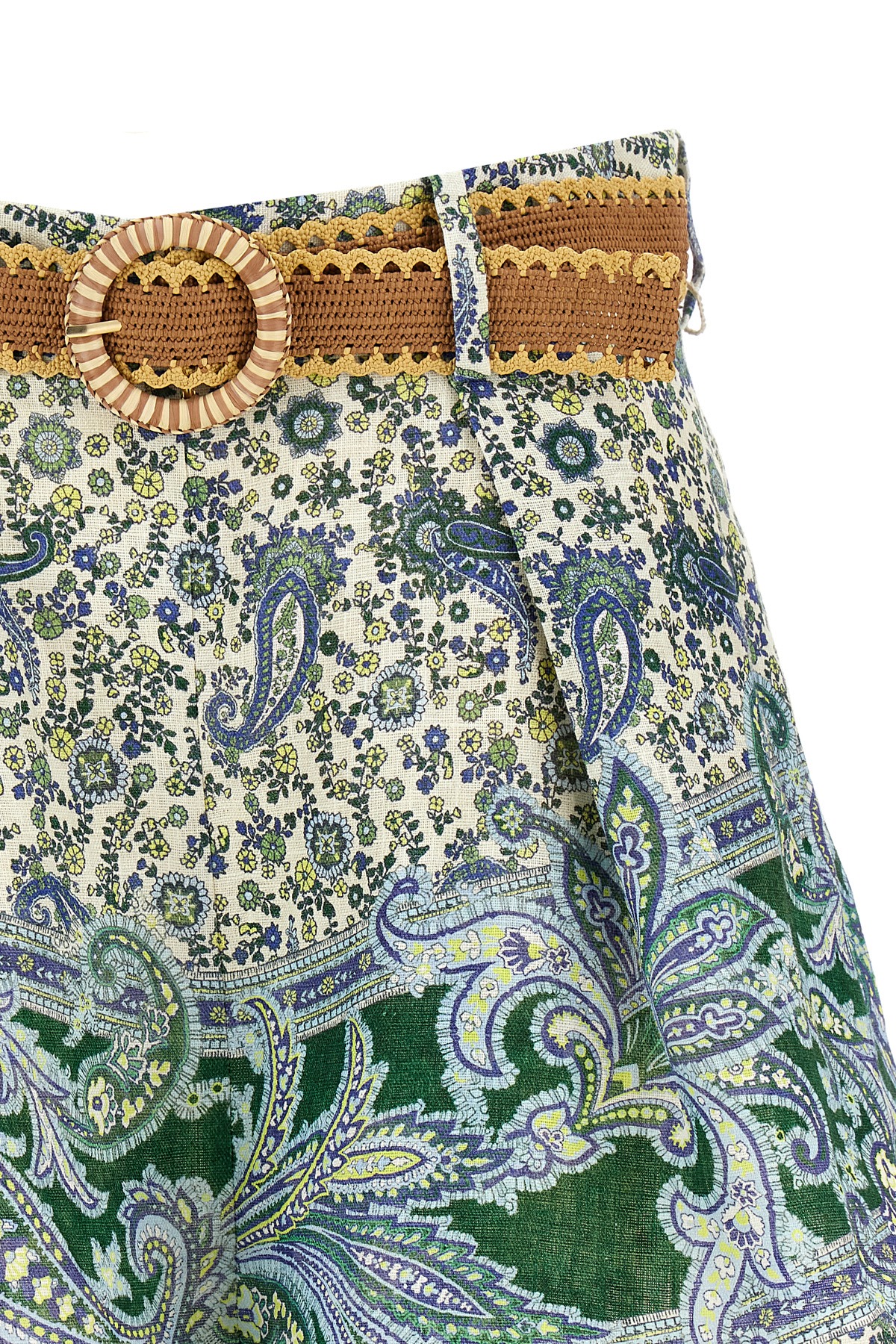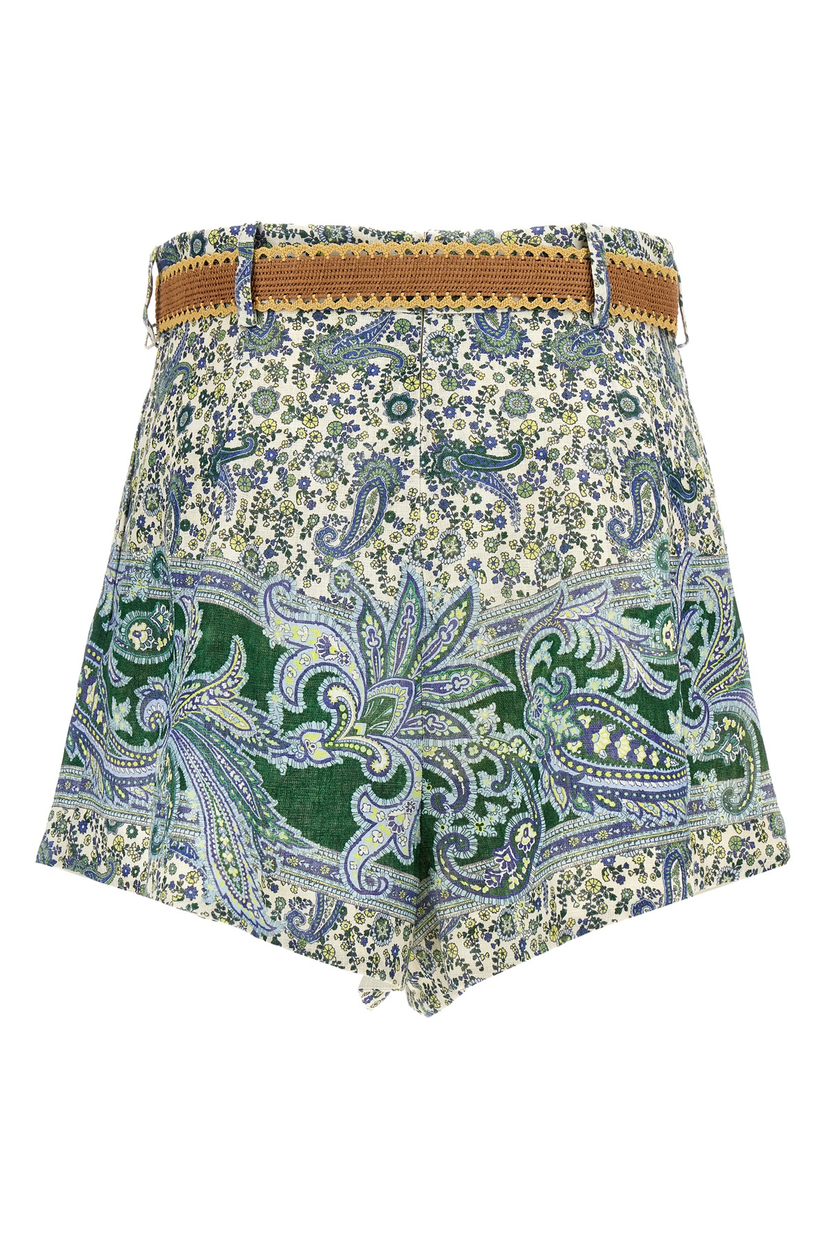 'Ottie Tuck' paisley-print linen shorts, back zip closure, pockets, removable waist belt.