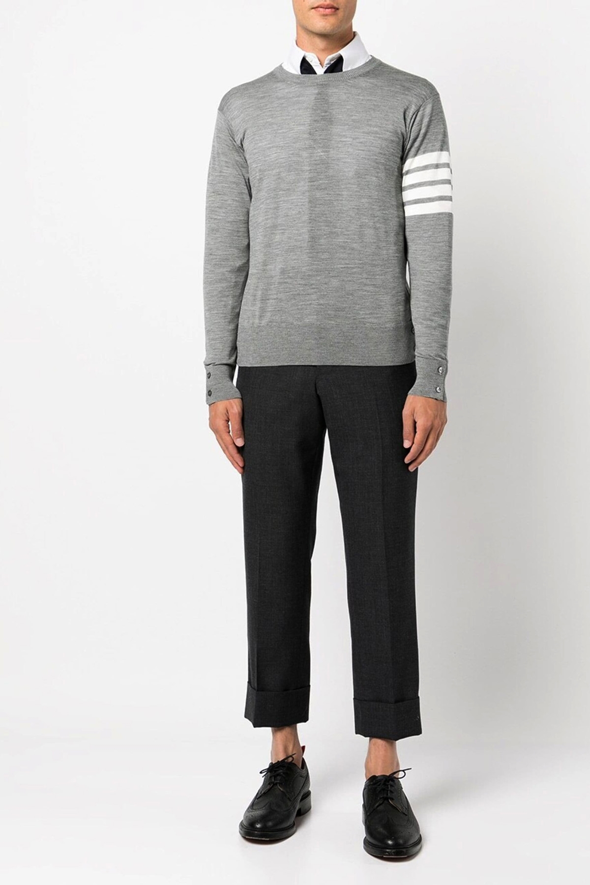 Wool sweater with contrast '4 Bar' detail, crew neck, long cuffed sleeves.