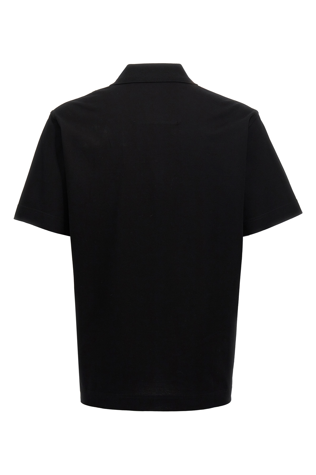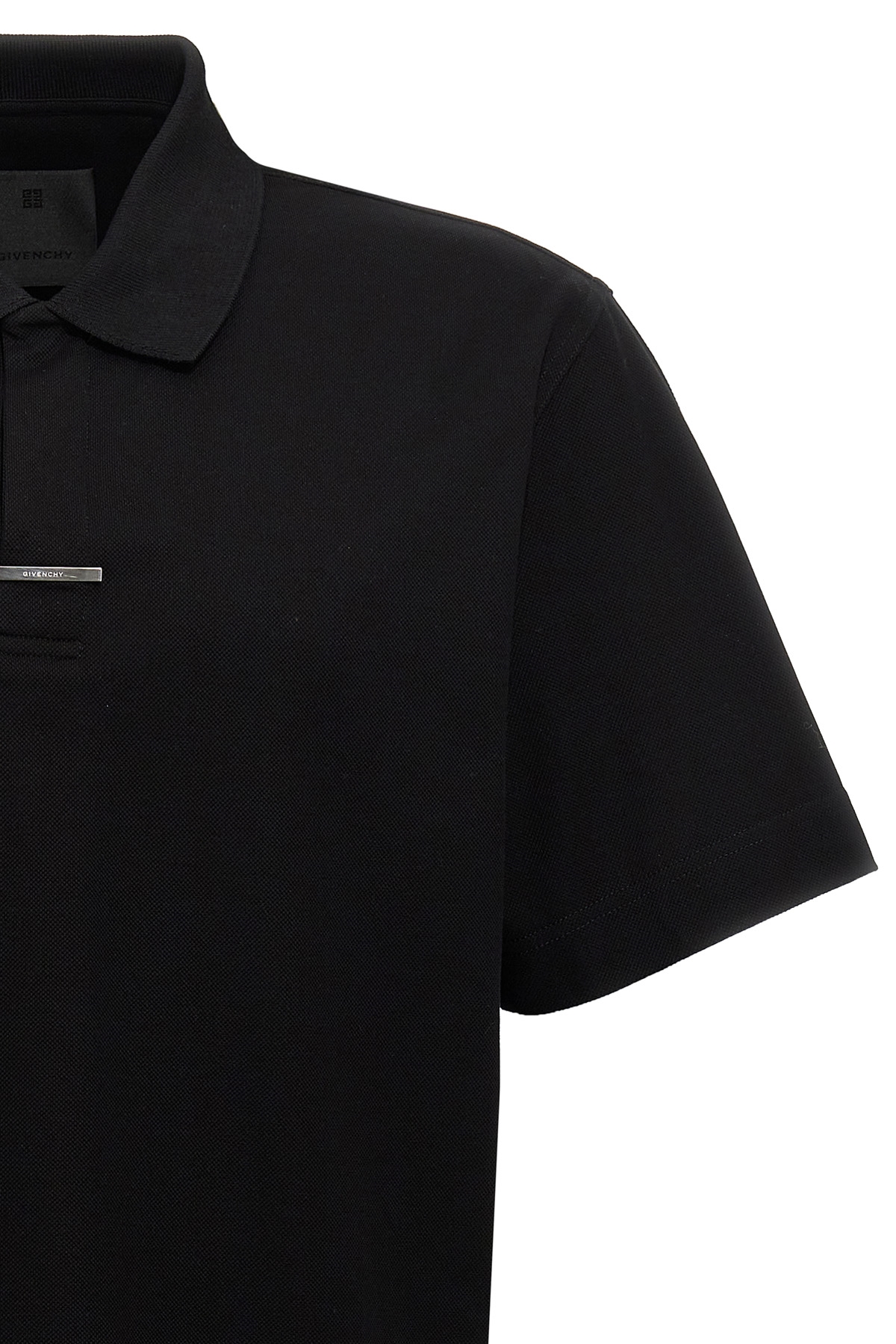'Placket' cotton polo shirt with metal logo detail, short sleeves, side slits, hidden buttons.