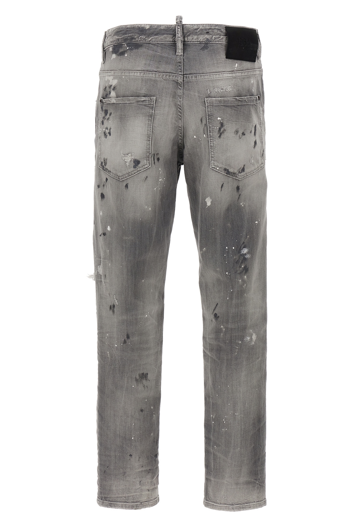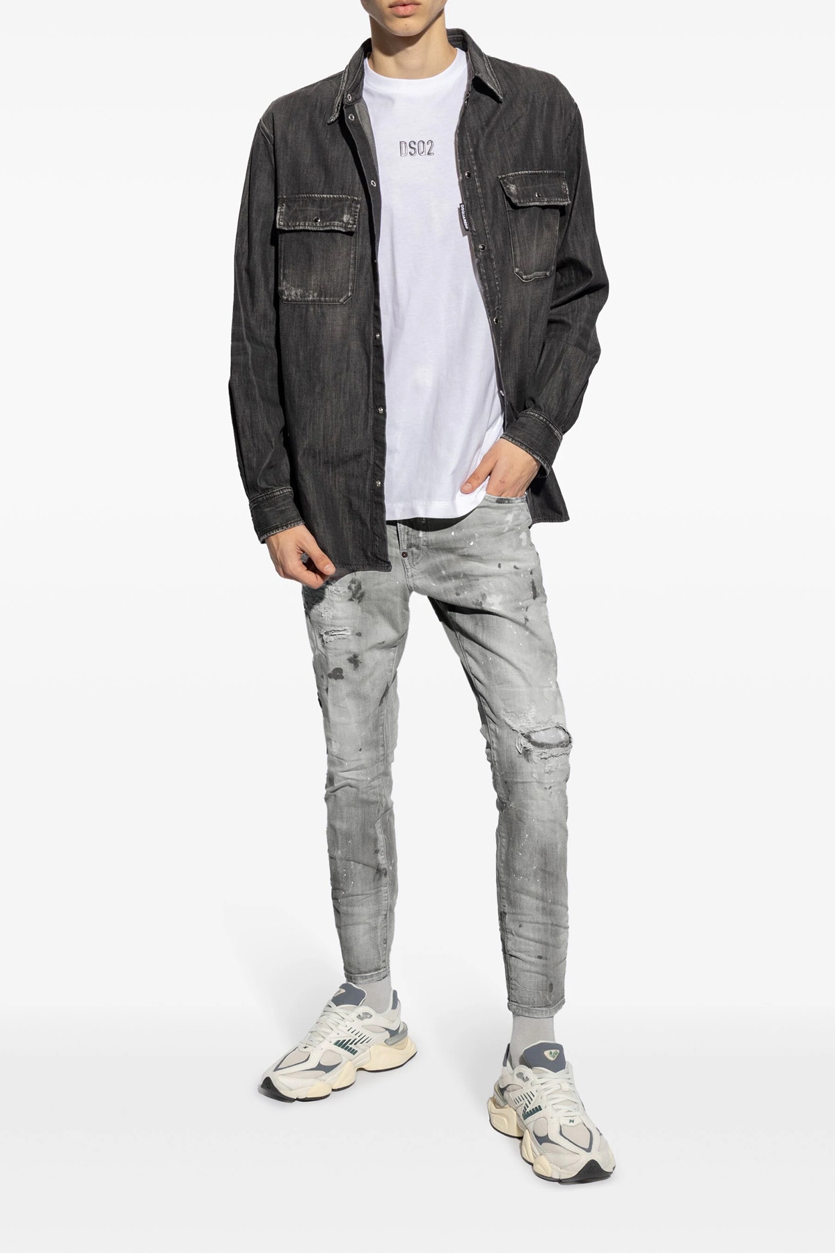'Skater' cotton denim jeans with used-effect details and paint stains, button closure, five pockets, leather logo tag.