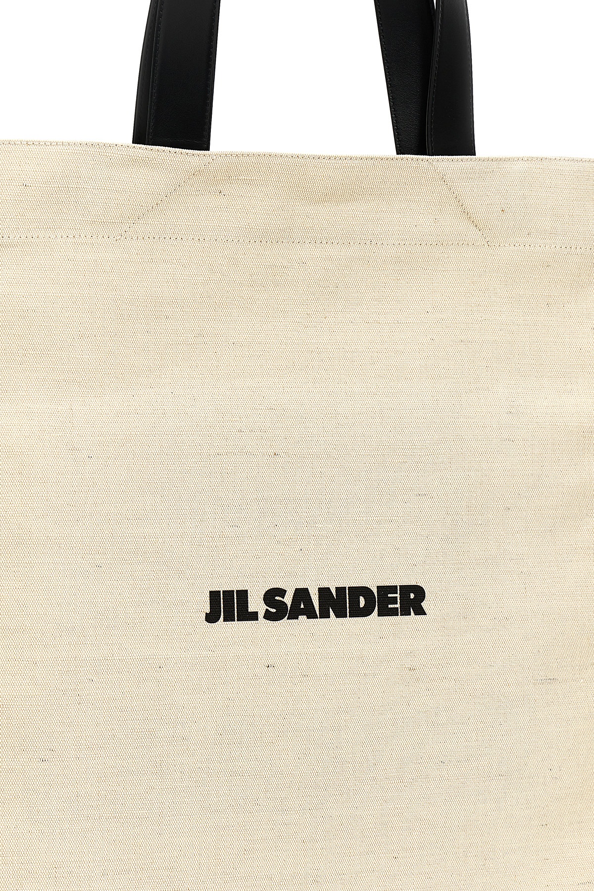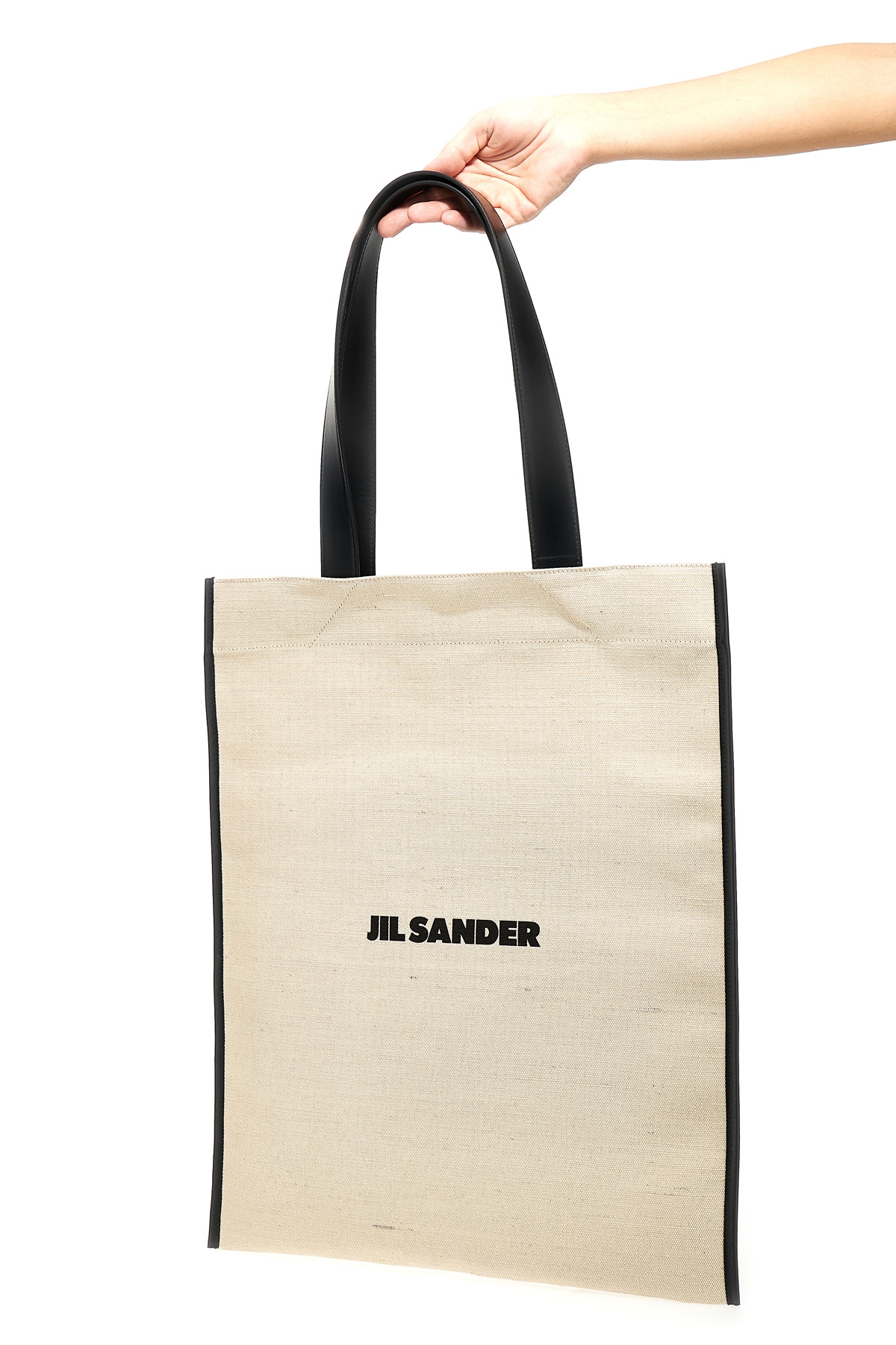 Medium 'Flat' canvas shopping bag with leather details, front logo print, double handle.
