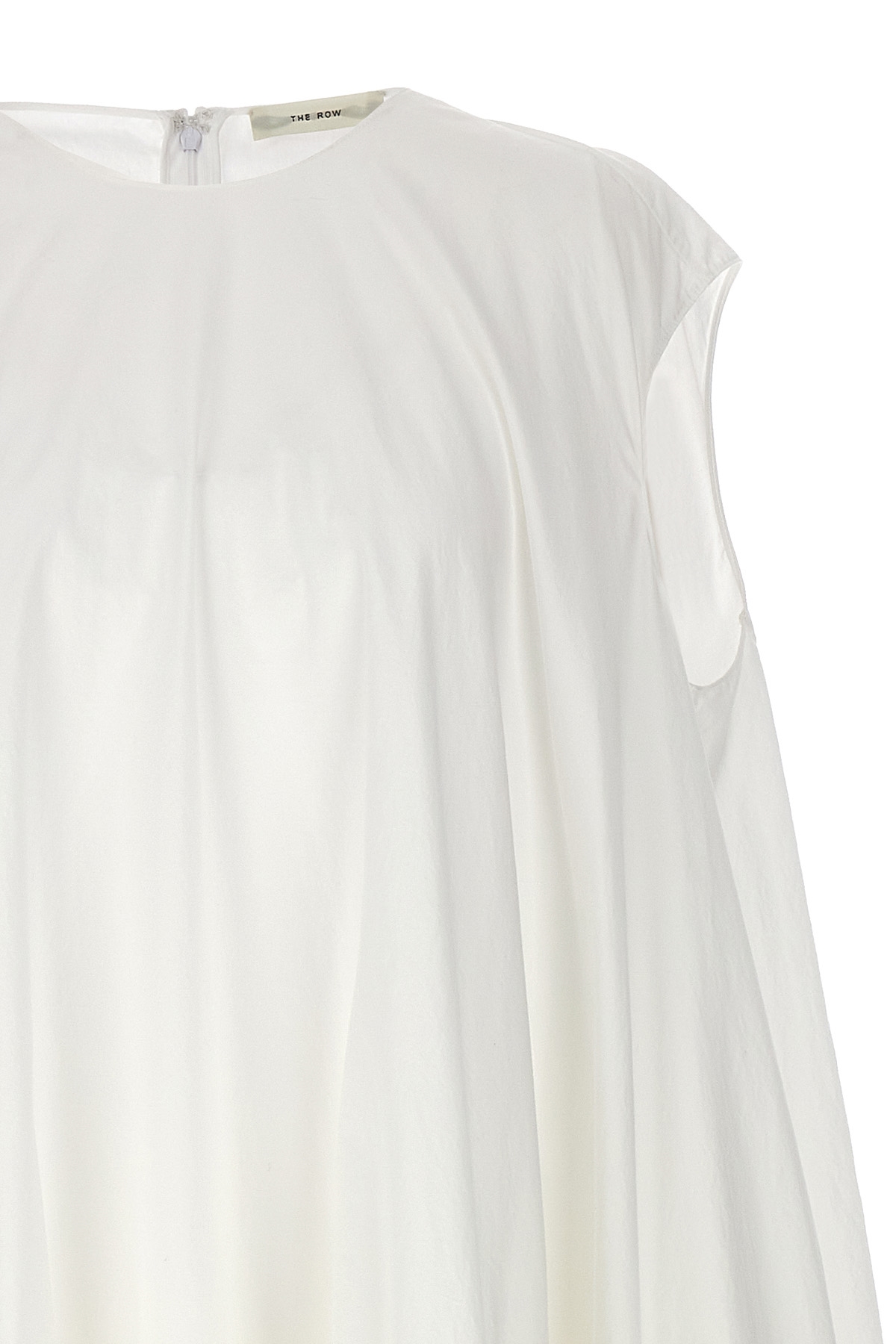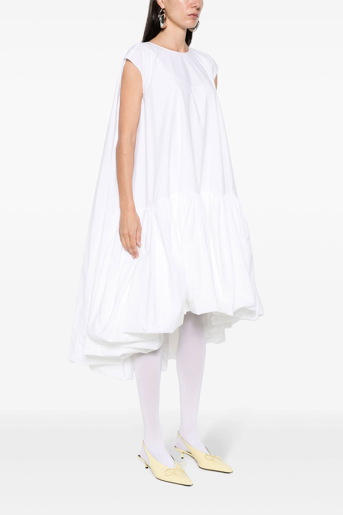 'Tadao' dress in cotton poplin with balloon-effect curled hem. Sleeveless, crew neck, equipped with side pockets.
