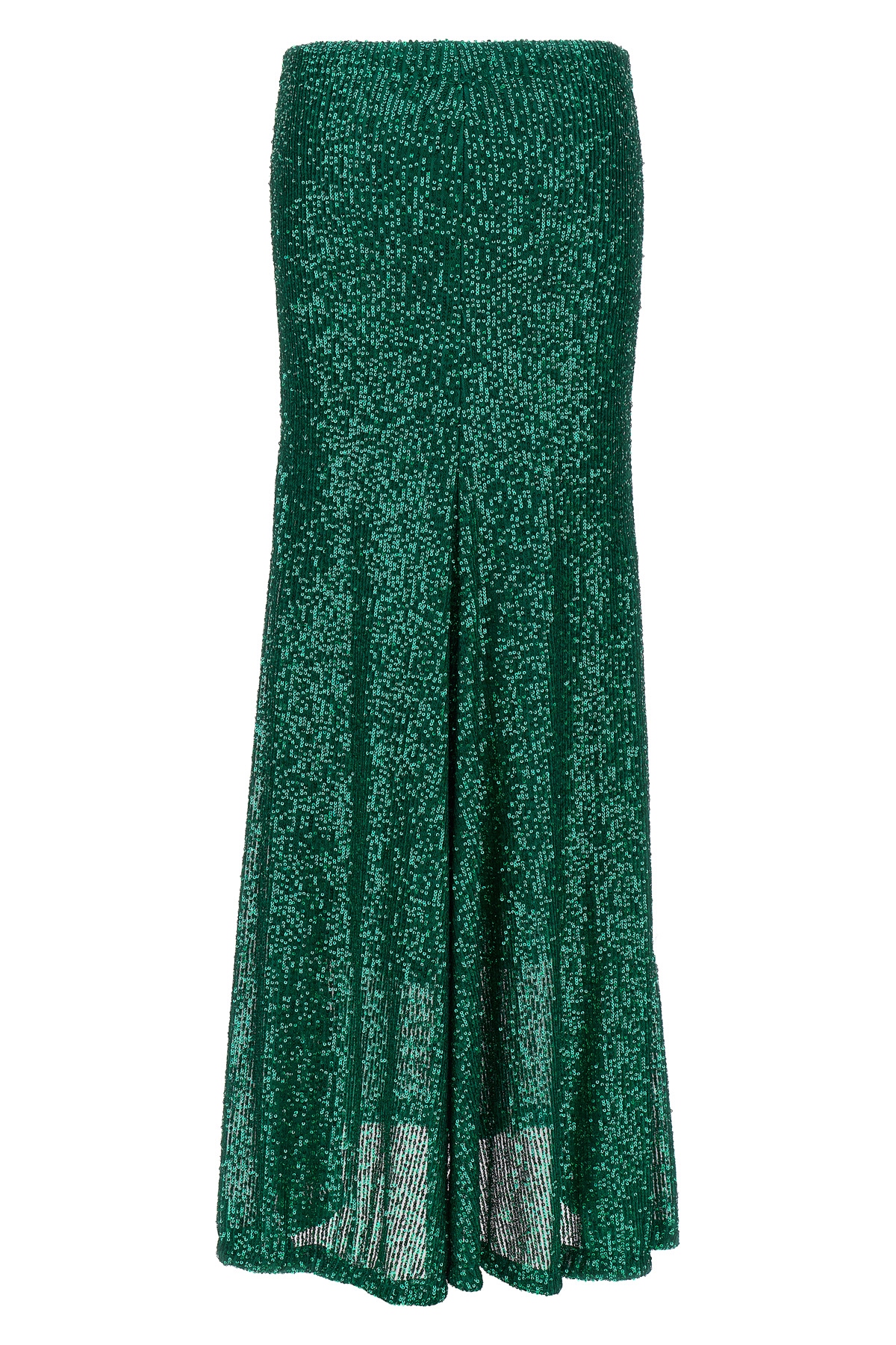 'Maria Cristina' long sequin skirt, elastic waistband, flared hem.