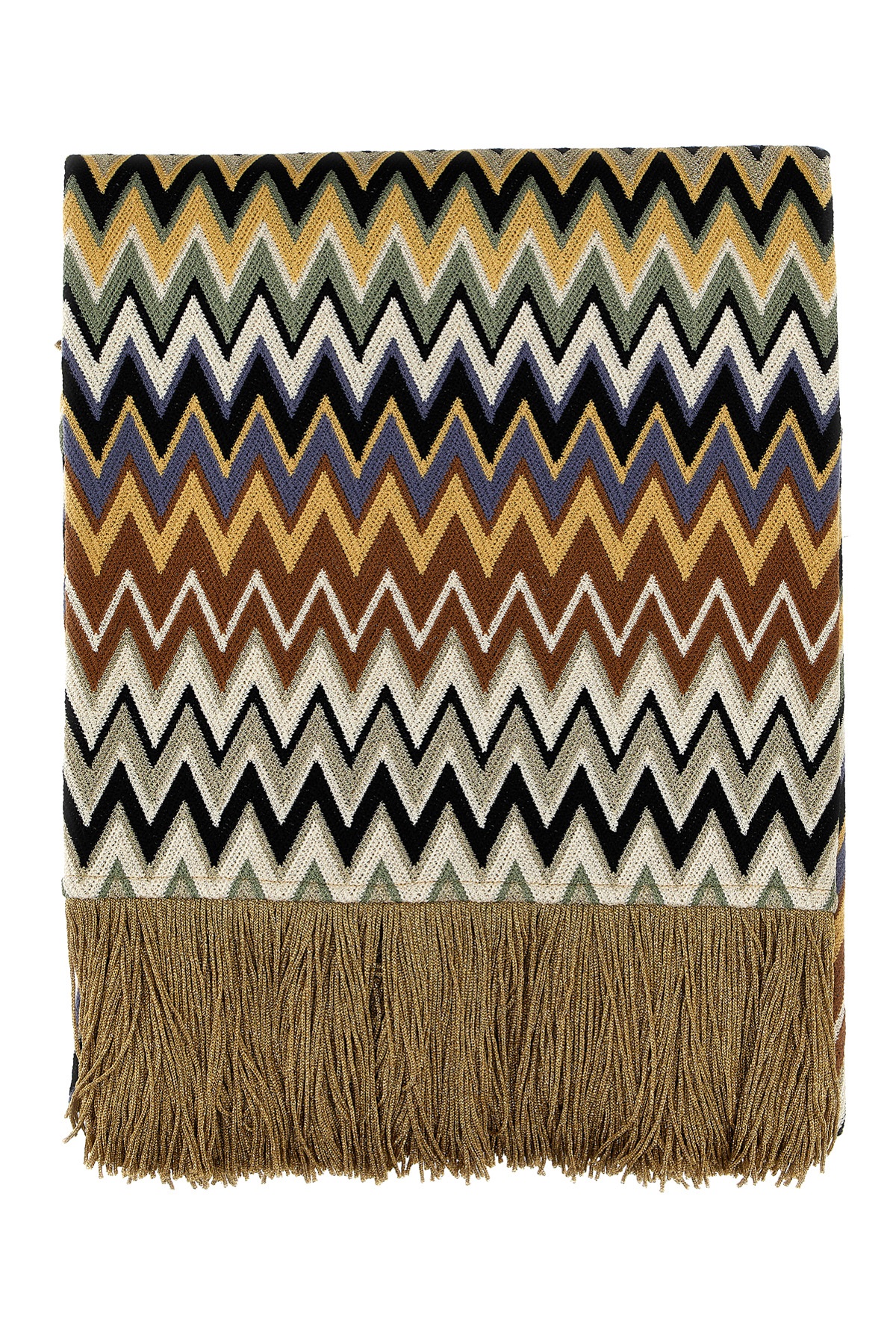 Knitted 'Margot' plaid with zigzag pattern, lurex yarn, fringed edges. MissoniHome gift box box.