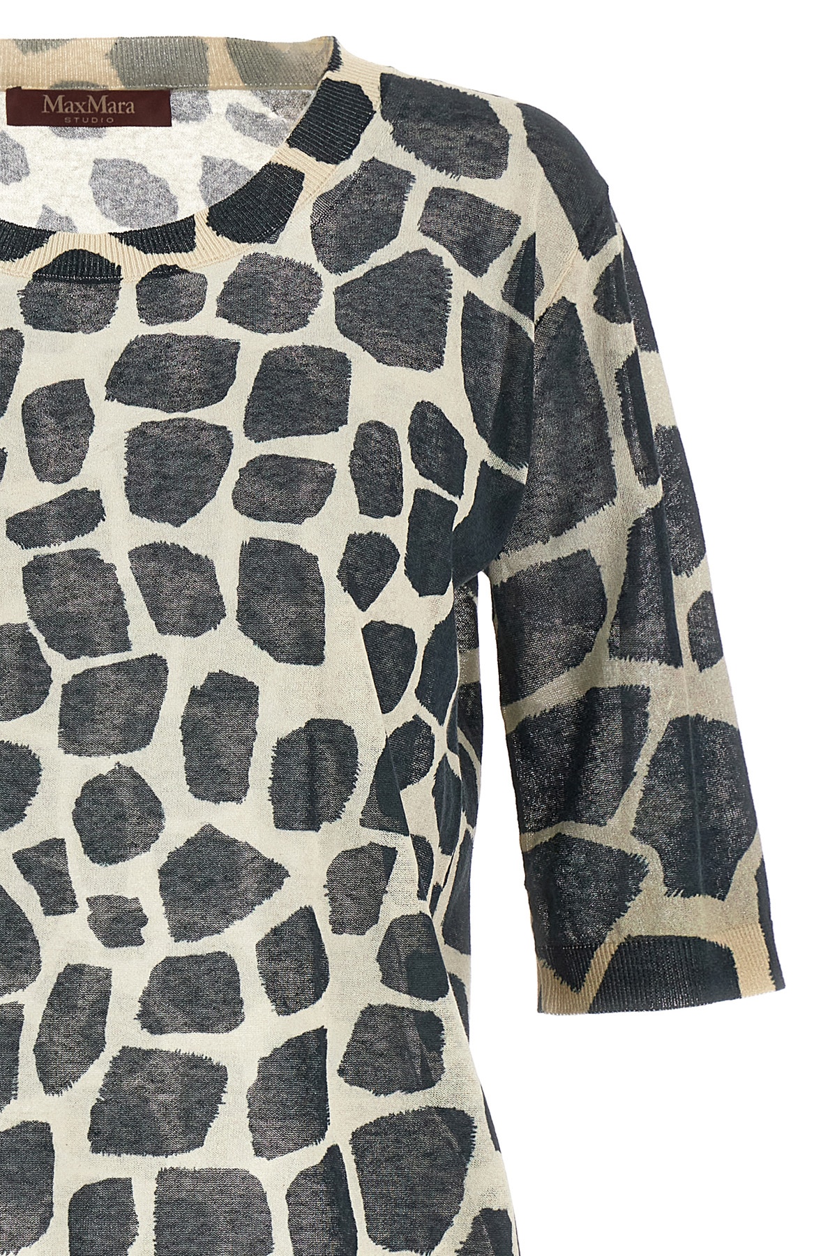 'Tina' cotton blend T-shirt with animal print giraffe, crew neck, short sleeves.