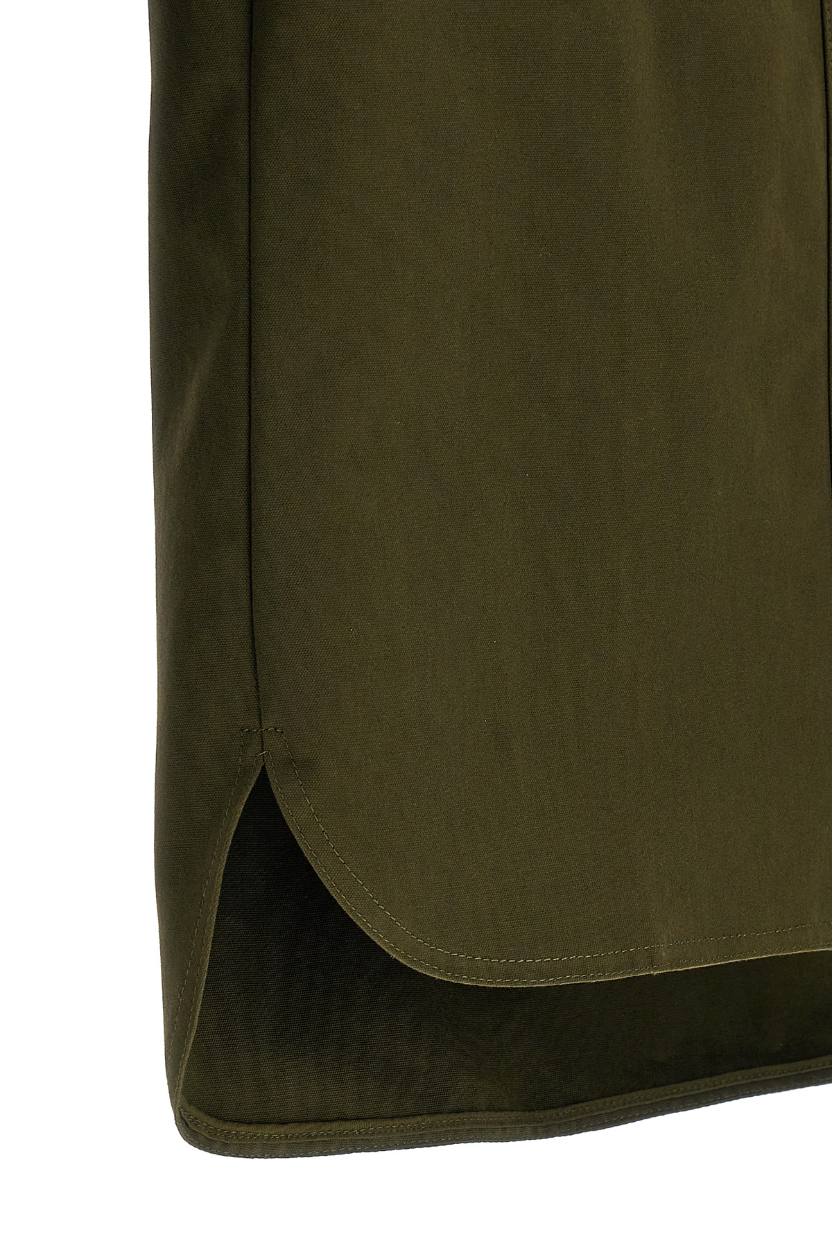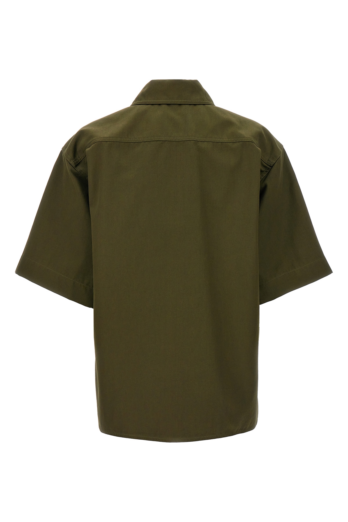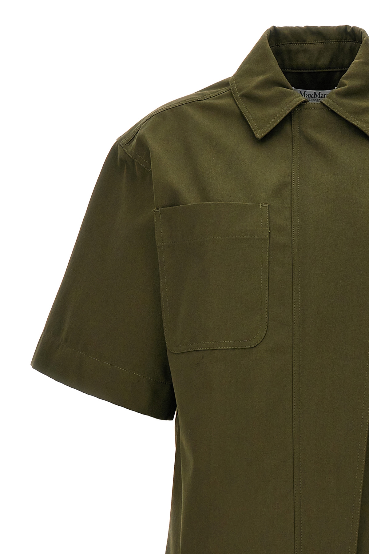 Cotton canvas 'Mela' shirt, front patch pockets, front zipper closure, asymmetrical bib, short wide sleeve.