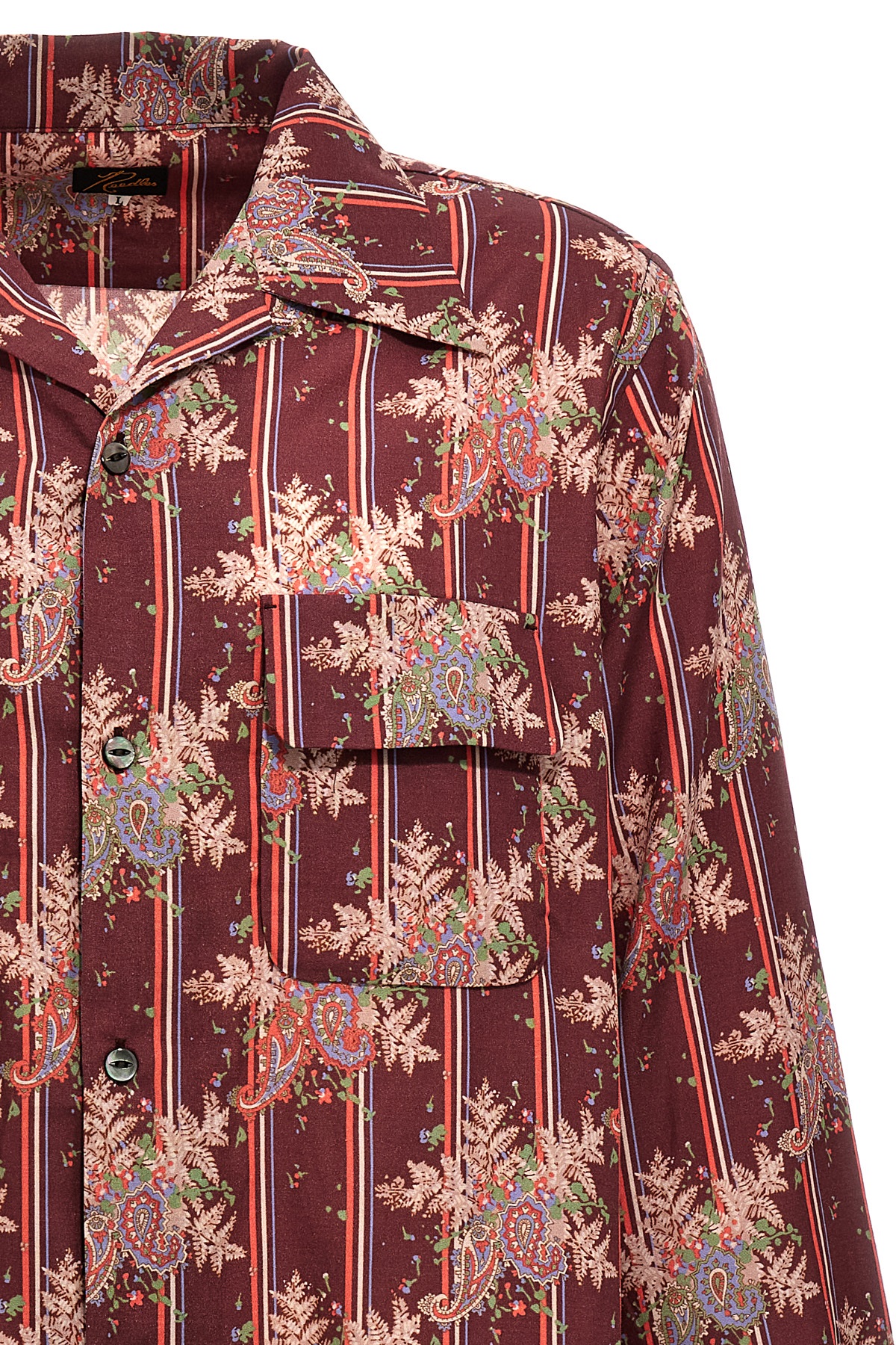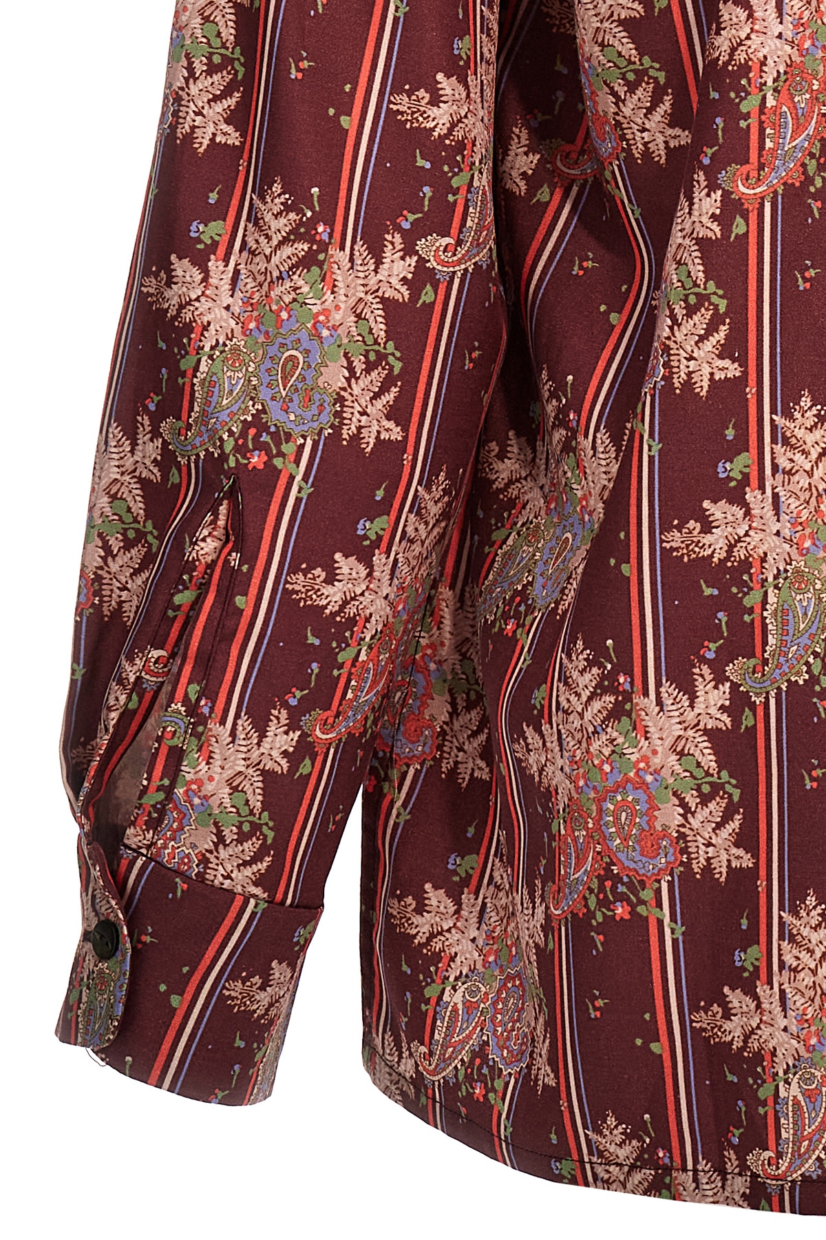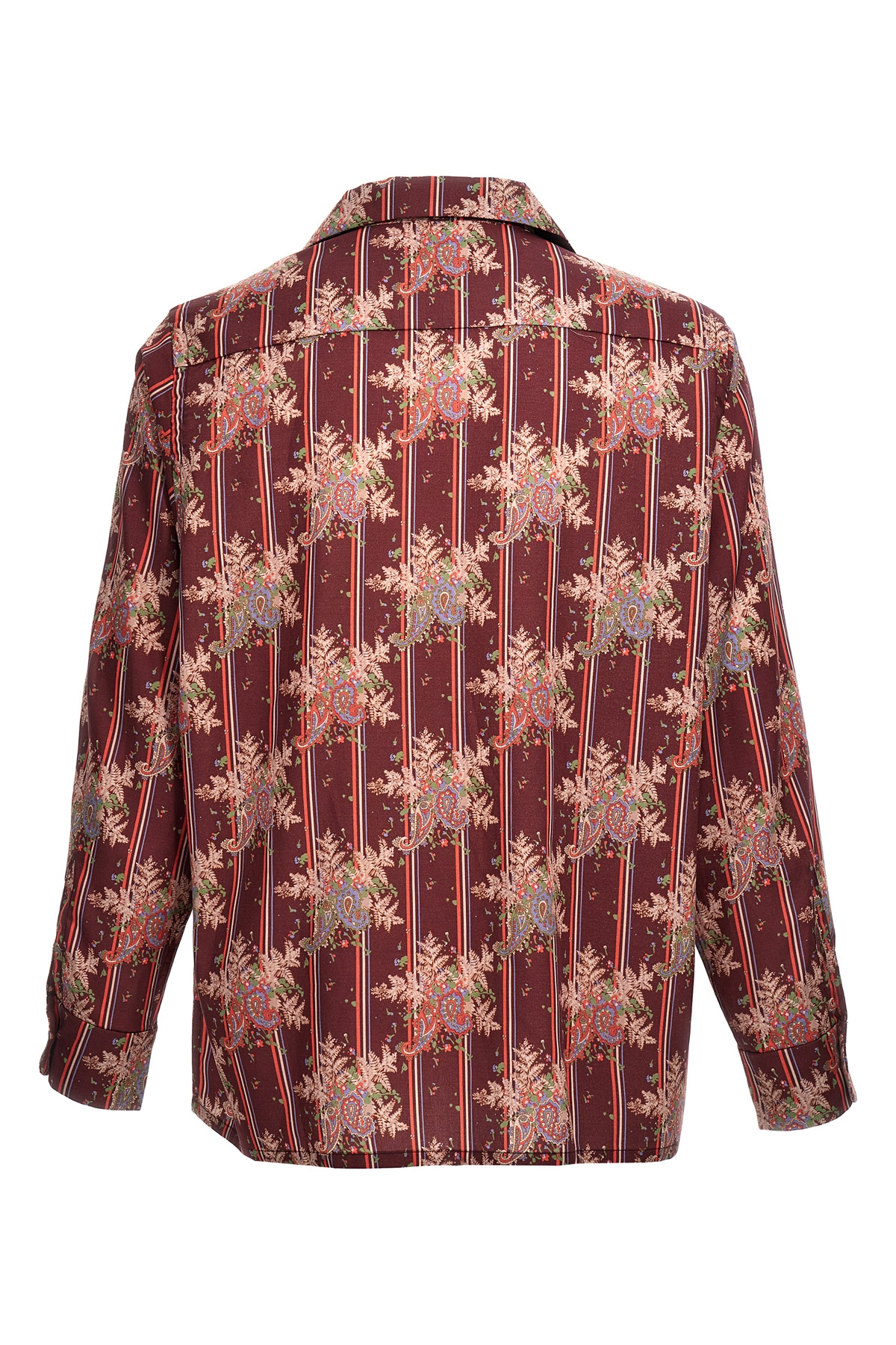 All-over print cotton blend shirt, front flap pockets, button closure, long cuffed sleeves.