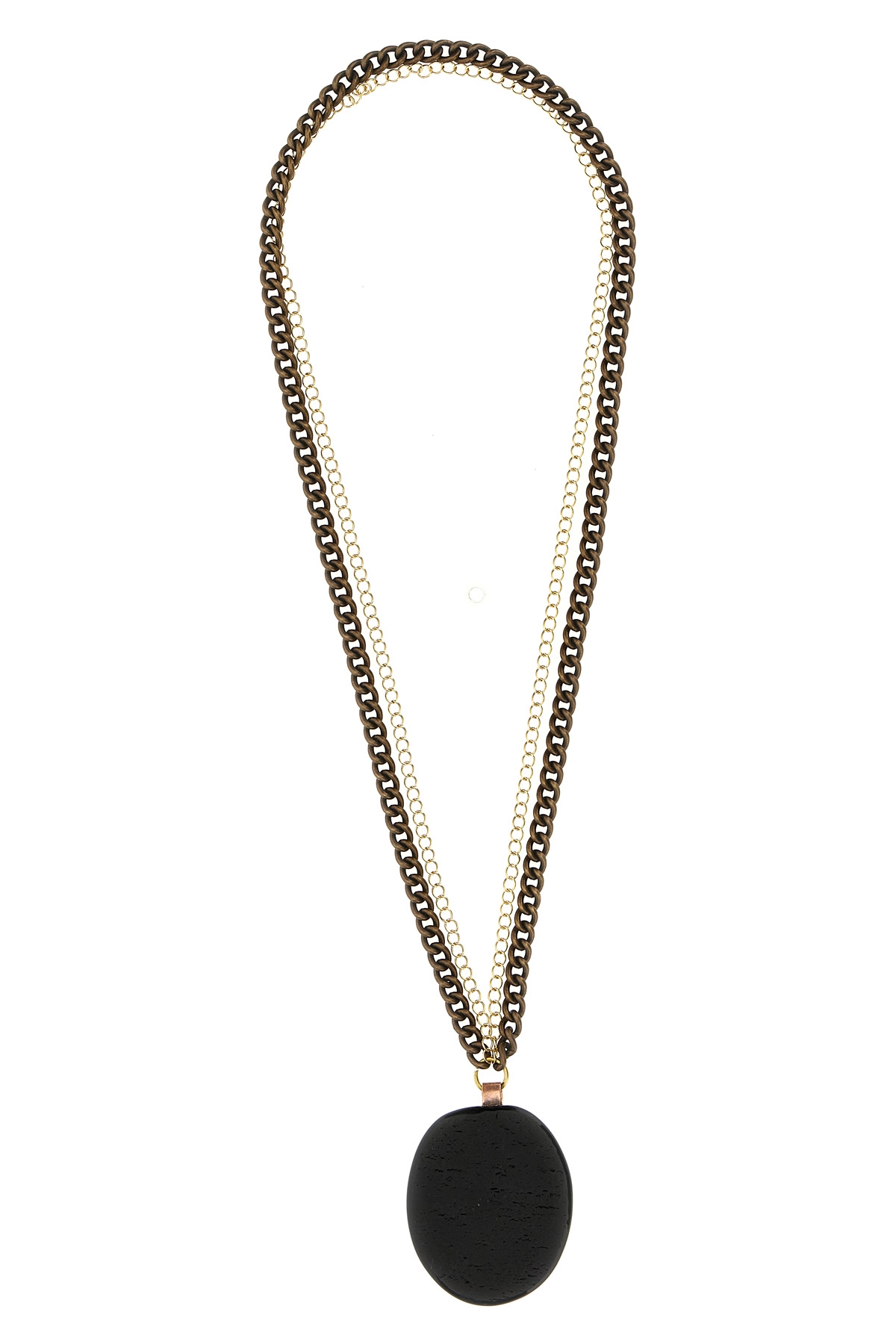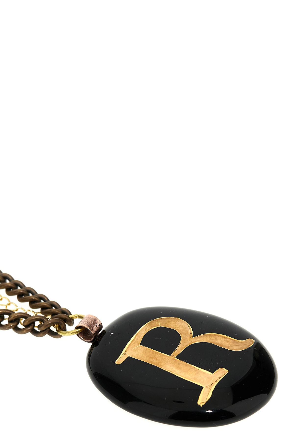 Double necklace with glass pendant with letter 'R' hand-painted in pure gold.