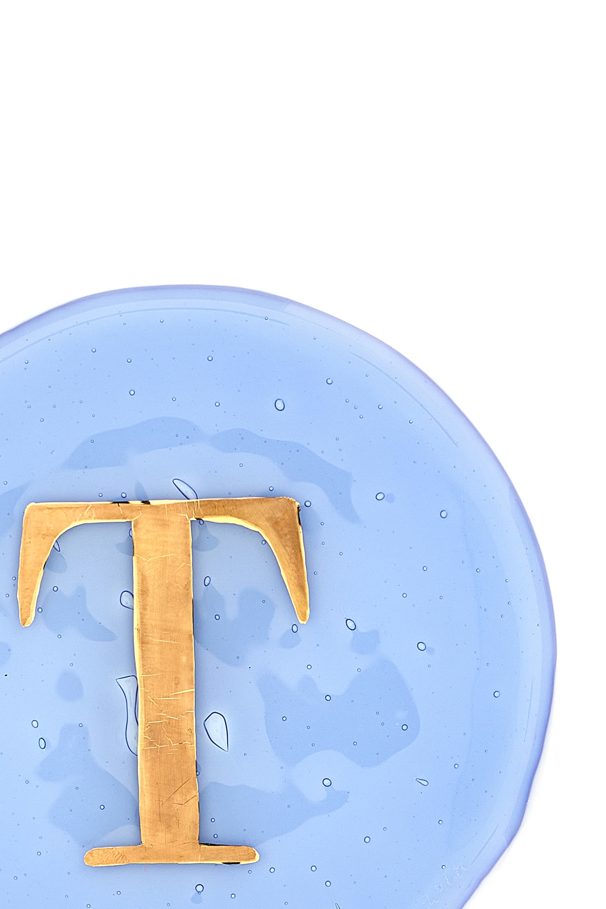 Glass valet tray with hand-painted letter 'T' in pure gold.