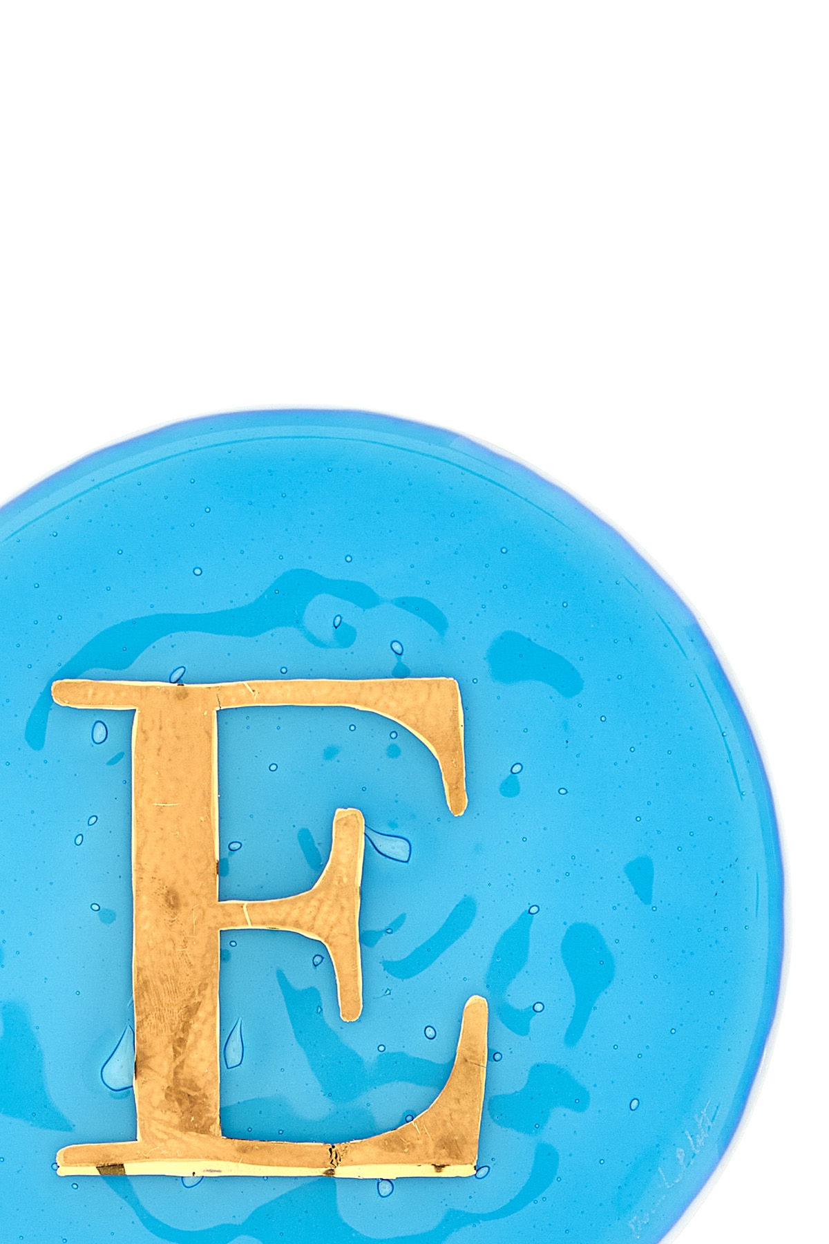 Glass valet tray with hand-painted letter 'E' in pure gold.