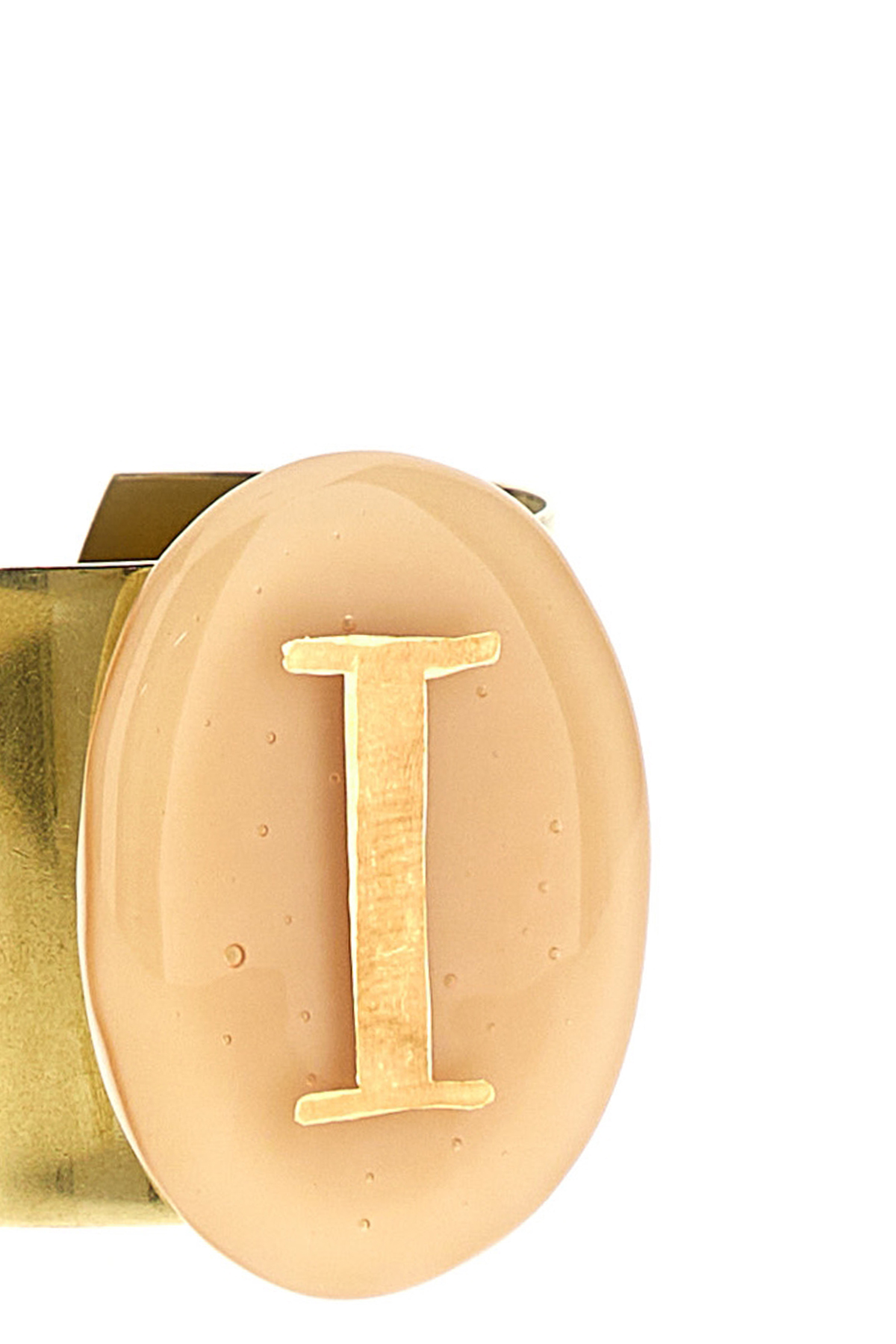 'Gipsy' napkin holder in gold metal, glass application with the letter 'I' hand-painted in pure gold.