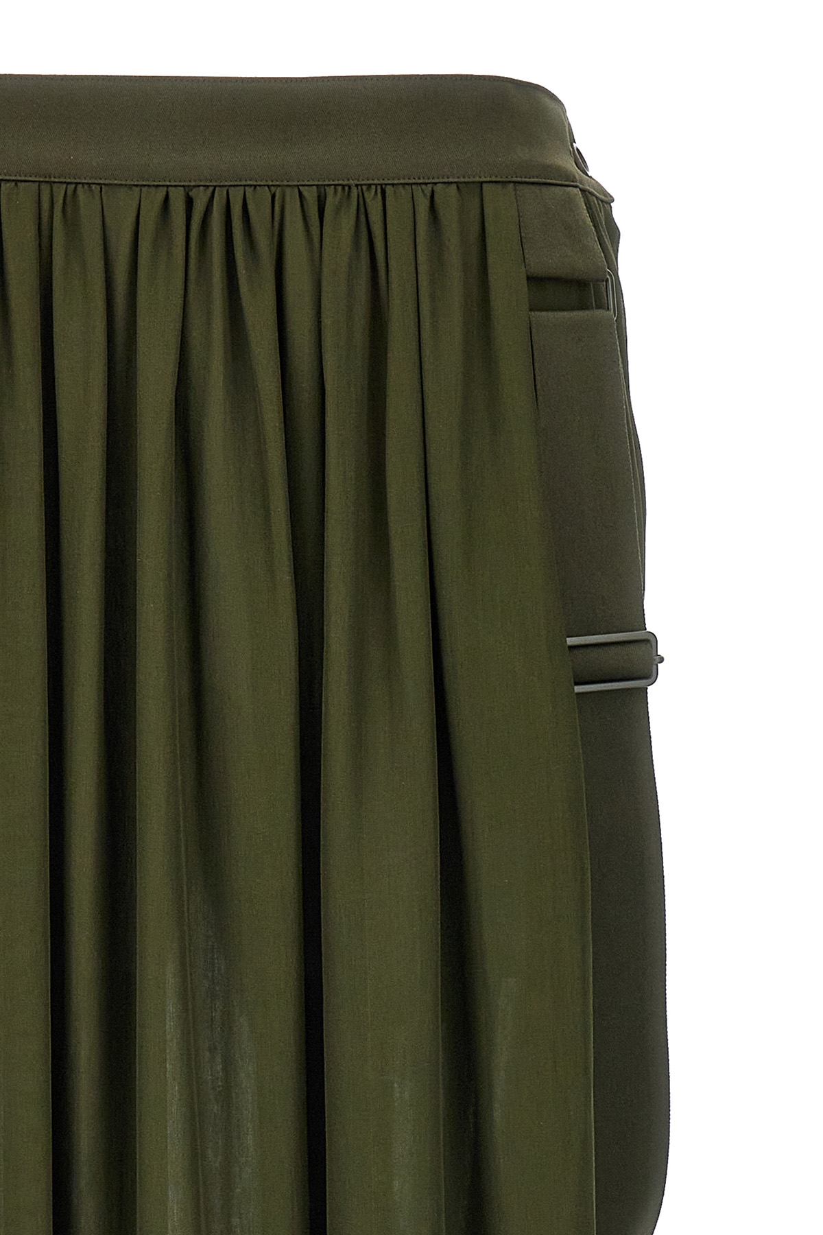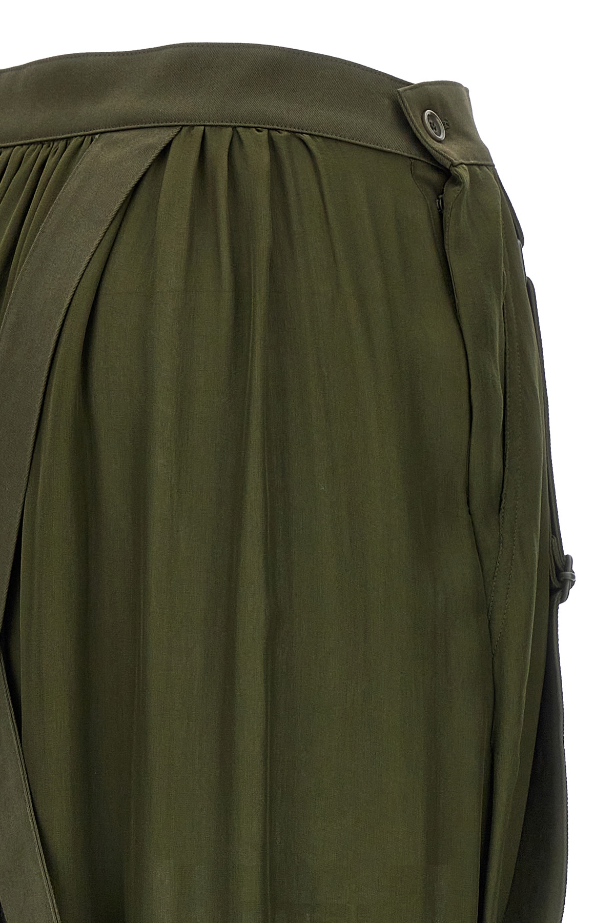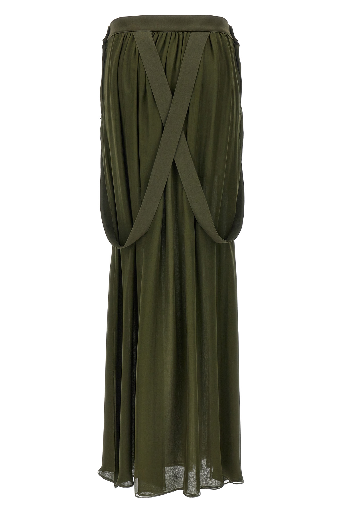 'Jedy' silk chiffon skirt with cotton gabardine belt, adjustable gabardine braces crossed at the back, pockets, button openings on the sides.