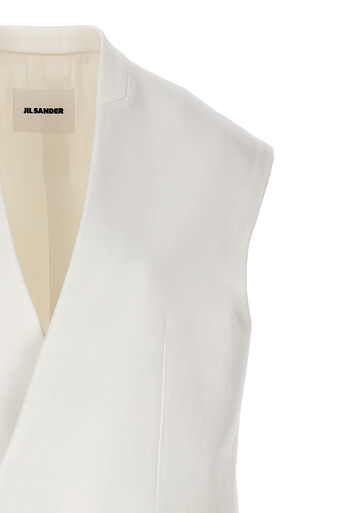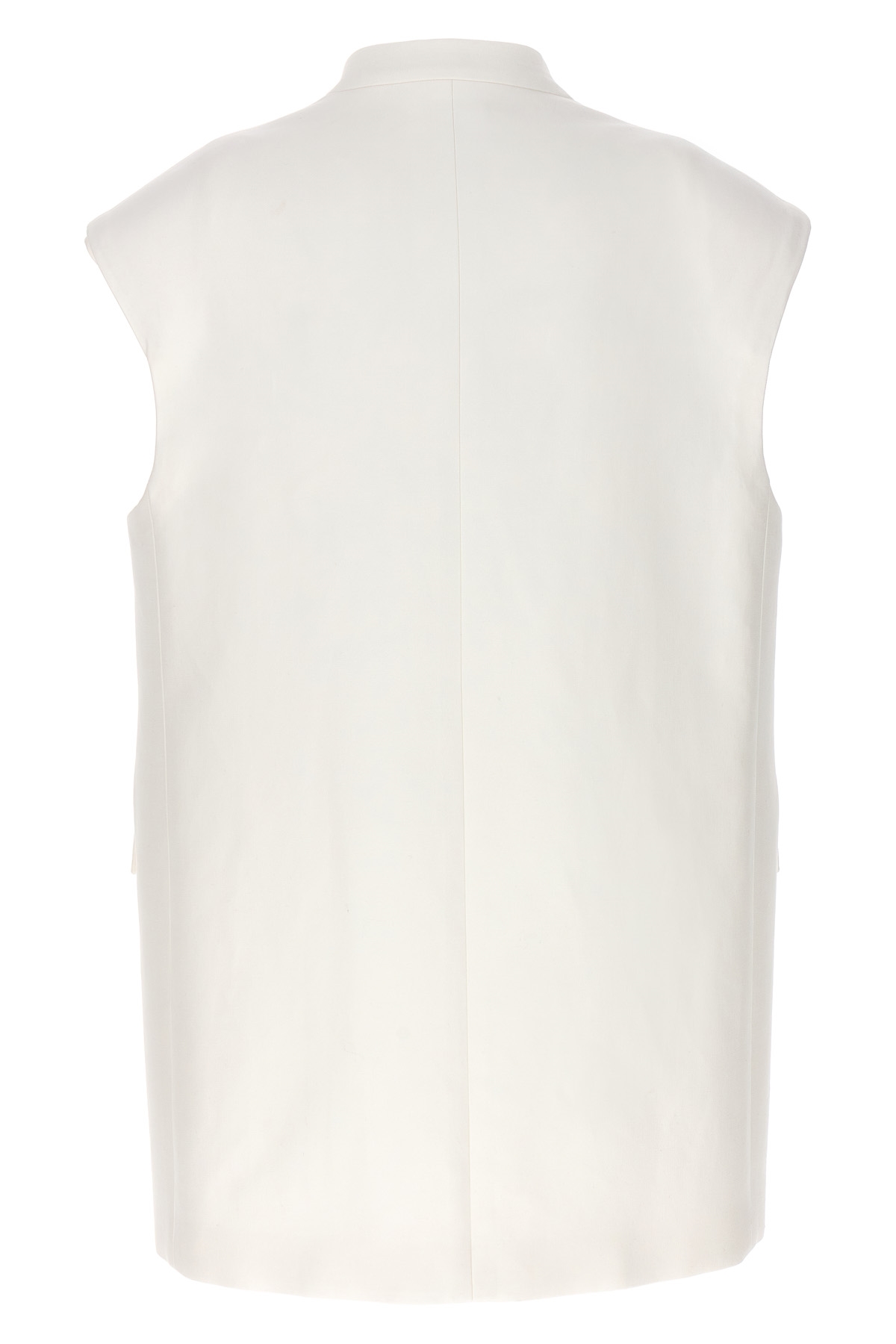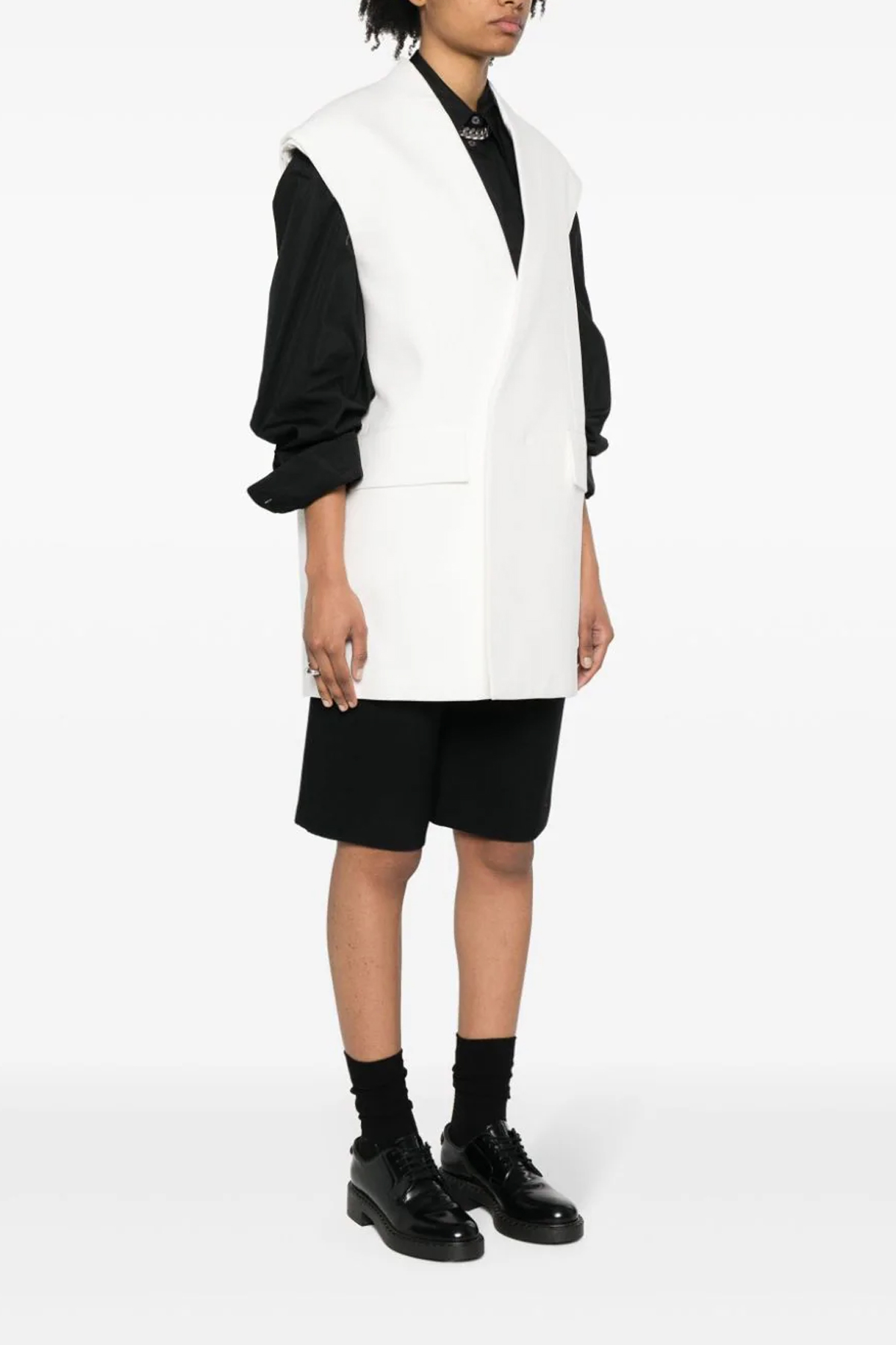 Oversized tailored cotton vest, double-breasted model with button closure, pockets, shoulder straps with removable padding.