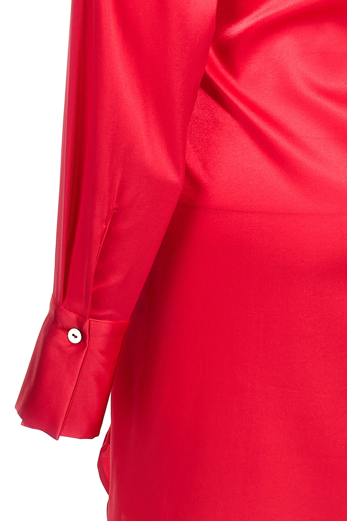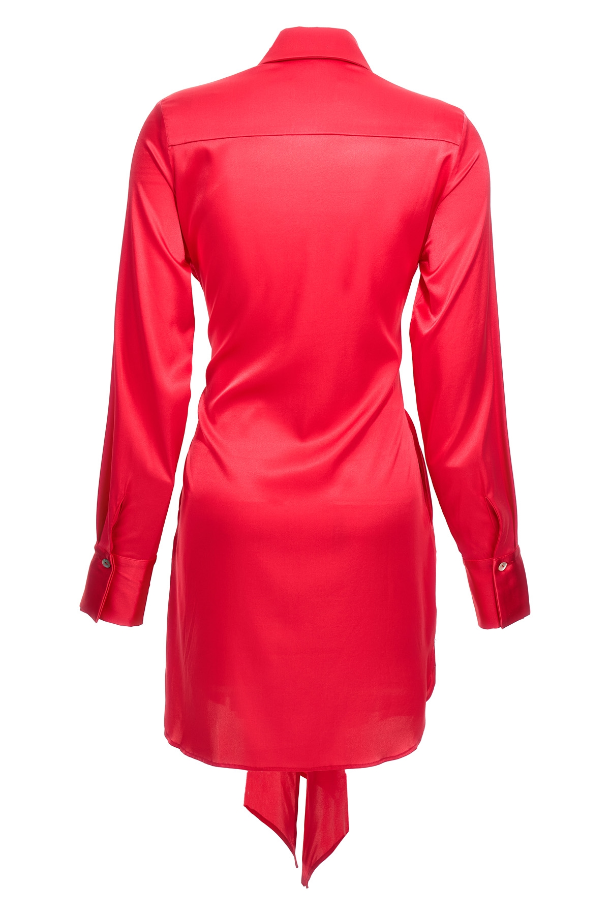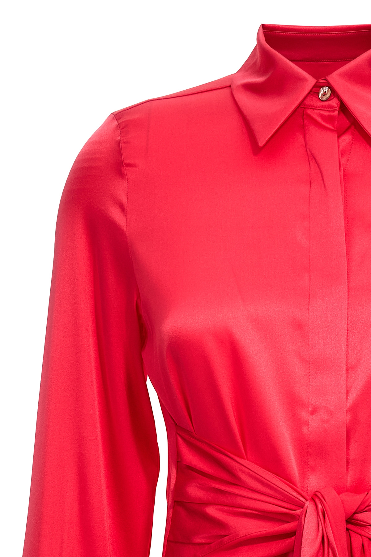 'Cervia' short dress with stretch silk shirt pattern and knotted at the waist.