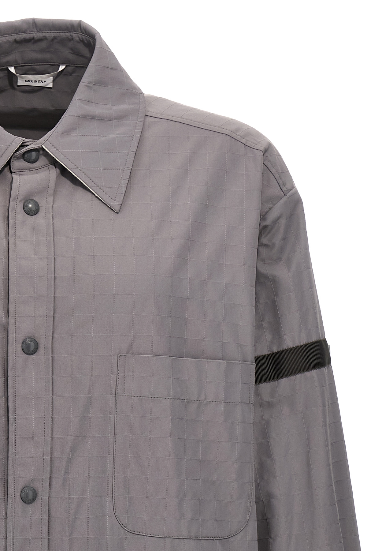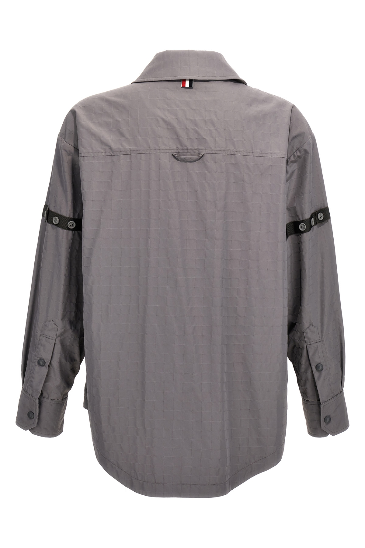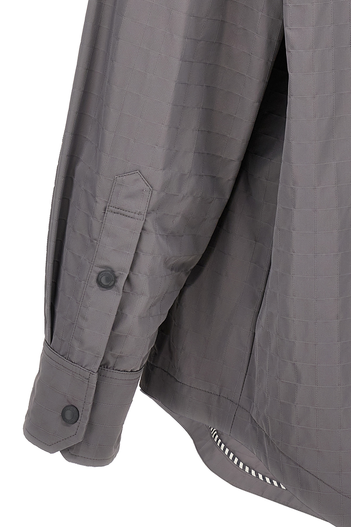 'Snap Front' ripstop nylon overshirt, button closure, pockets, long cuffed sleeves.