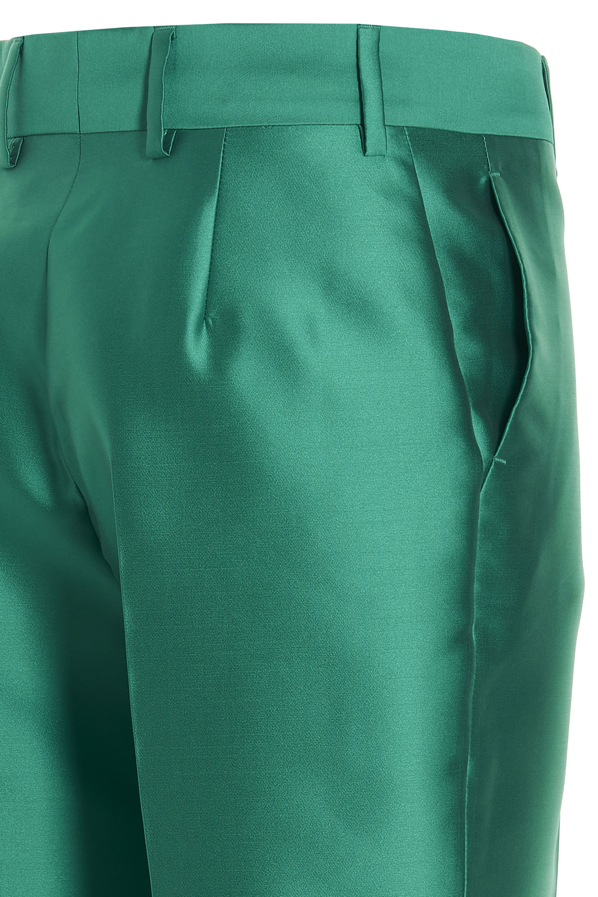 Satin fabric pants with straight leg, a hook-and-eye zip closure.