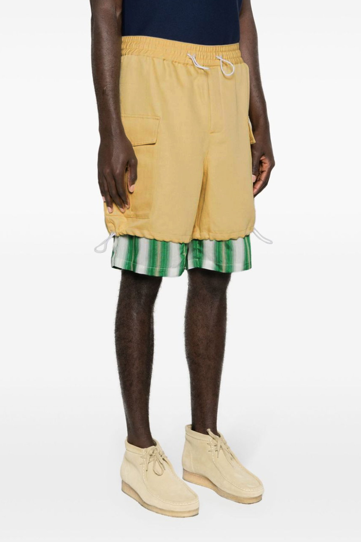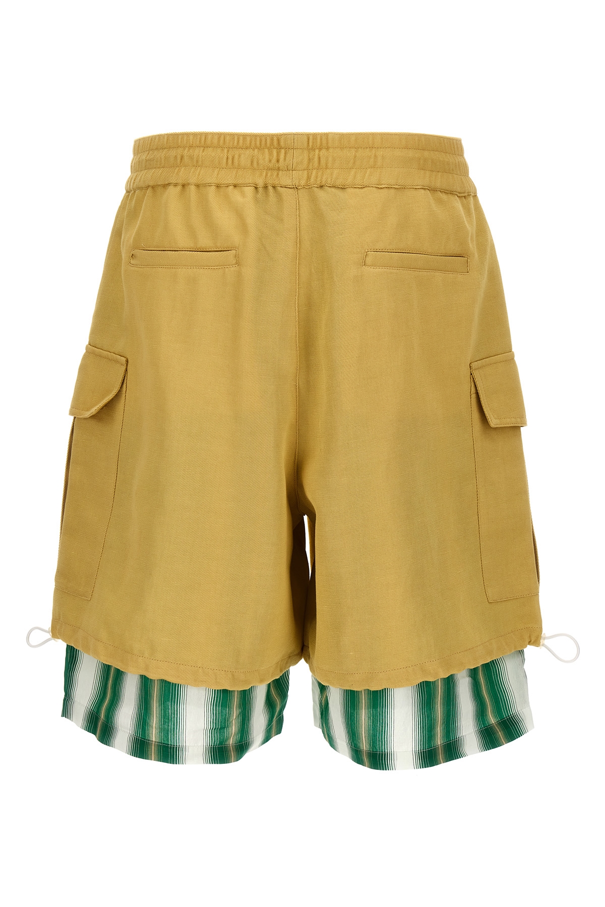 'Roam Cargo' cotton and linen blend bermuda shorts with striped insert on the hem, adjustable elastic and drawstring at the waist, pockets.