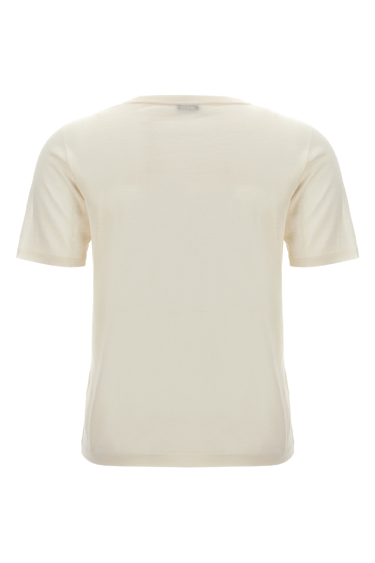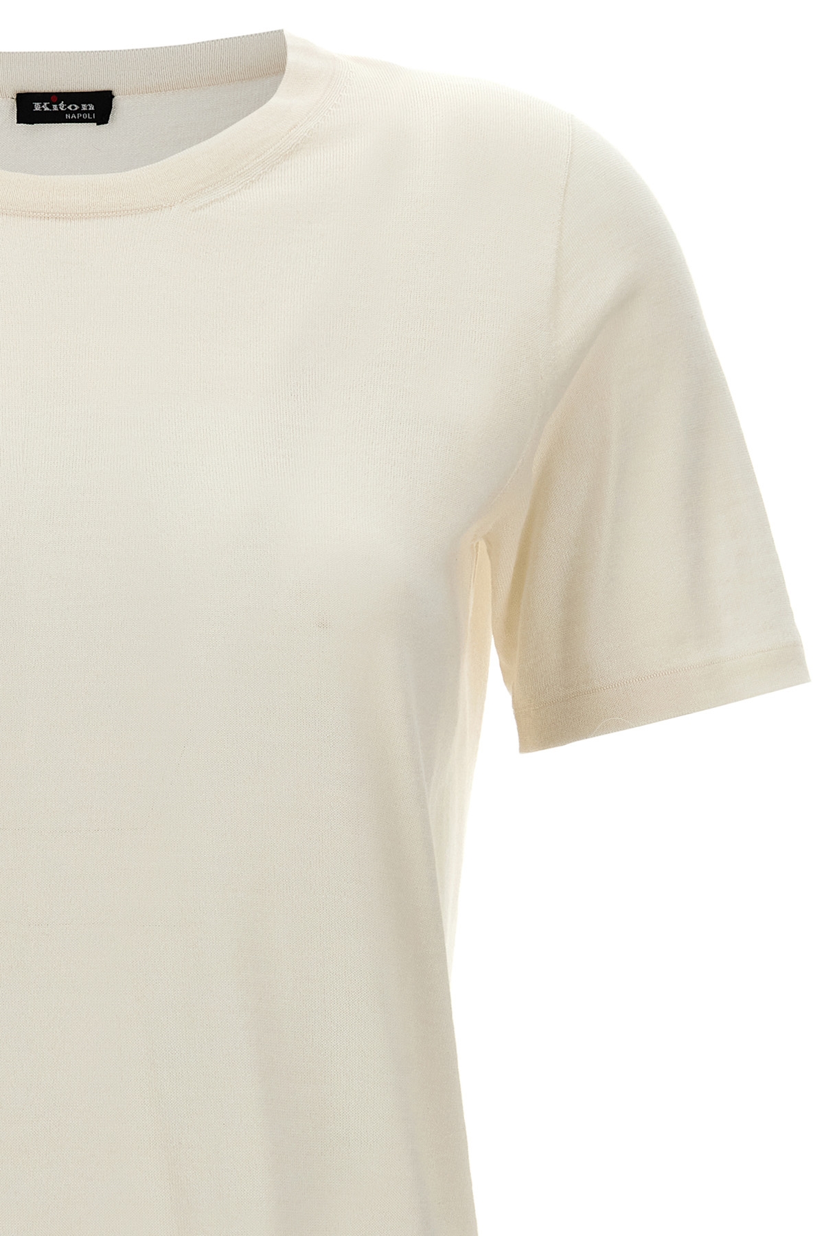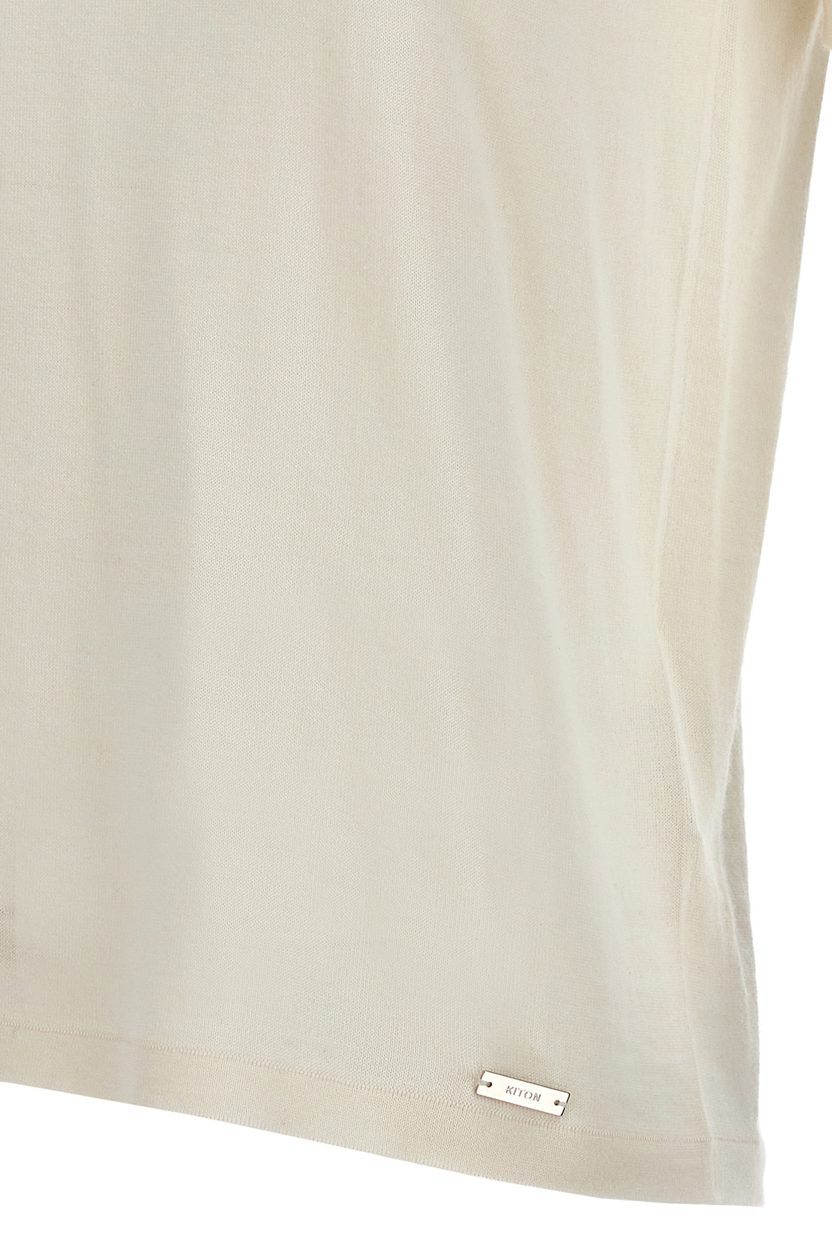 Cashmere and silk crew neck t-shirt with short sleeves, metal logo plaque.
