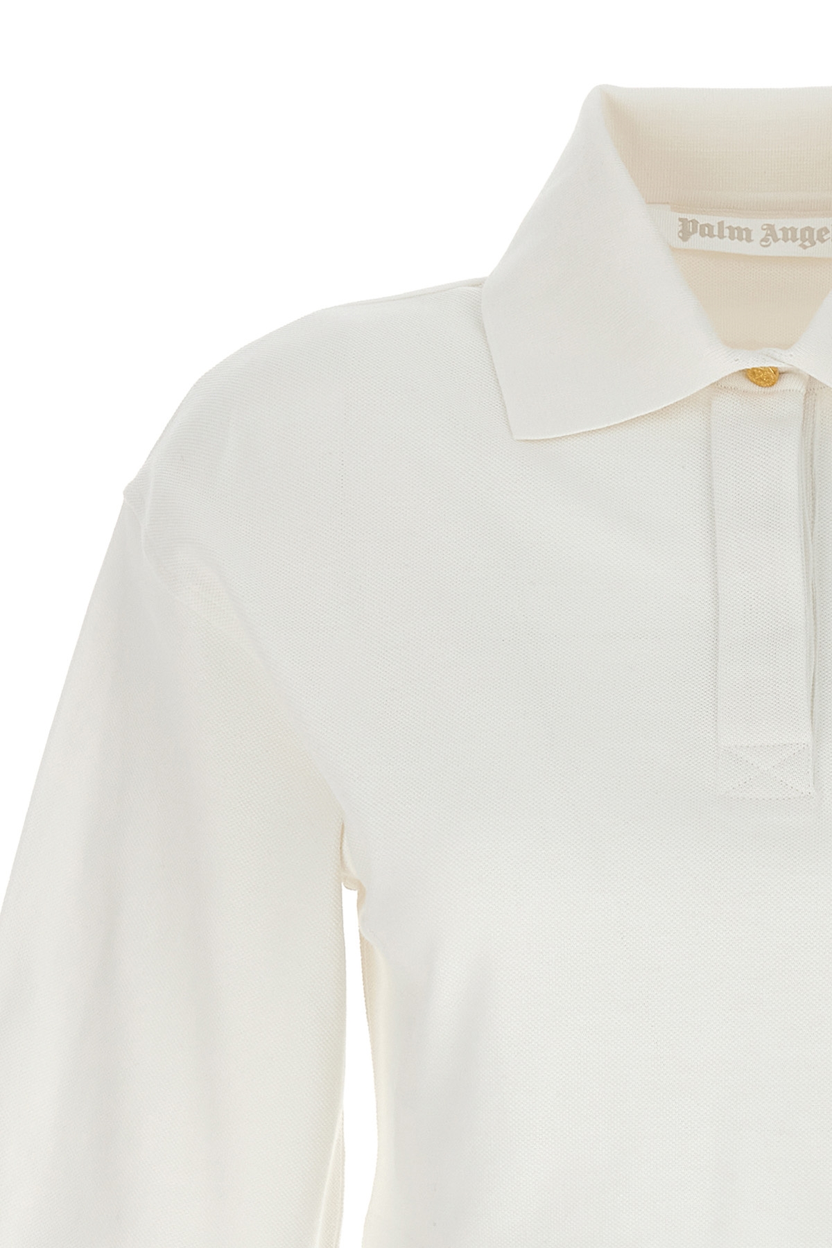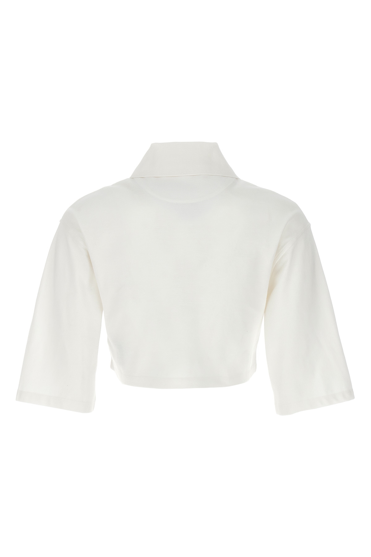 Pique cotton cropped polo shirt with front 'Monogram' embroidery, and 3/4 sleeves.