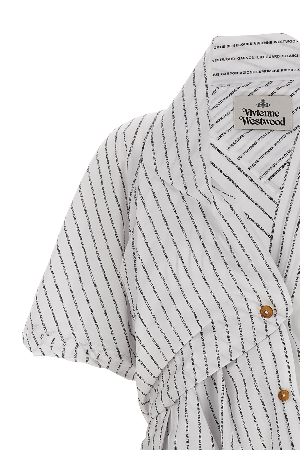 'Natalia' cotton poplin dress with all-over print, short puff sleeves, V-neck.