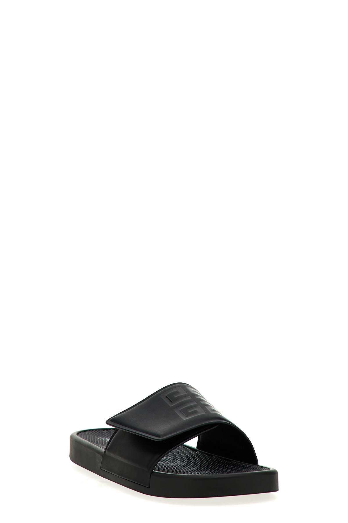 'Slide' sandals in leather-effect fabric with front logo on adjustable band.