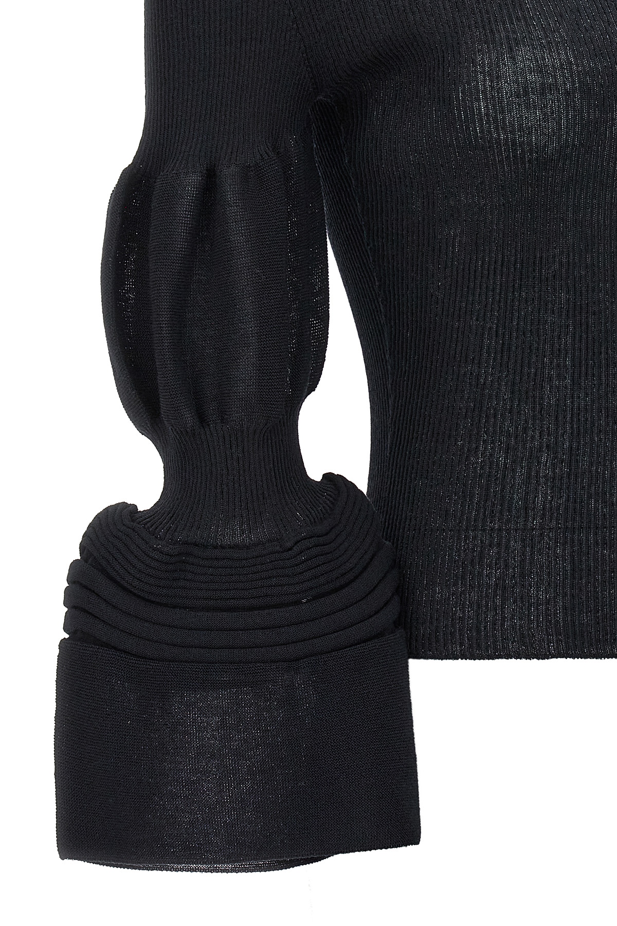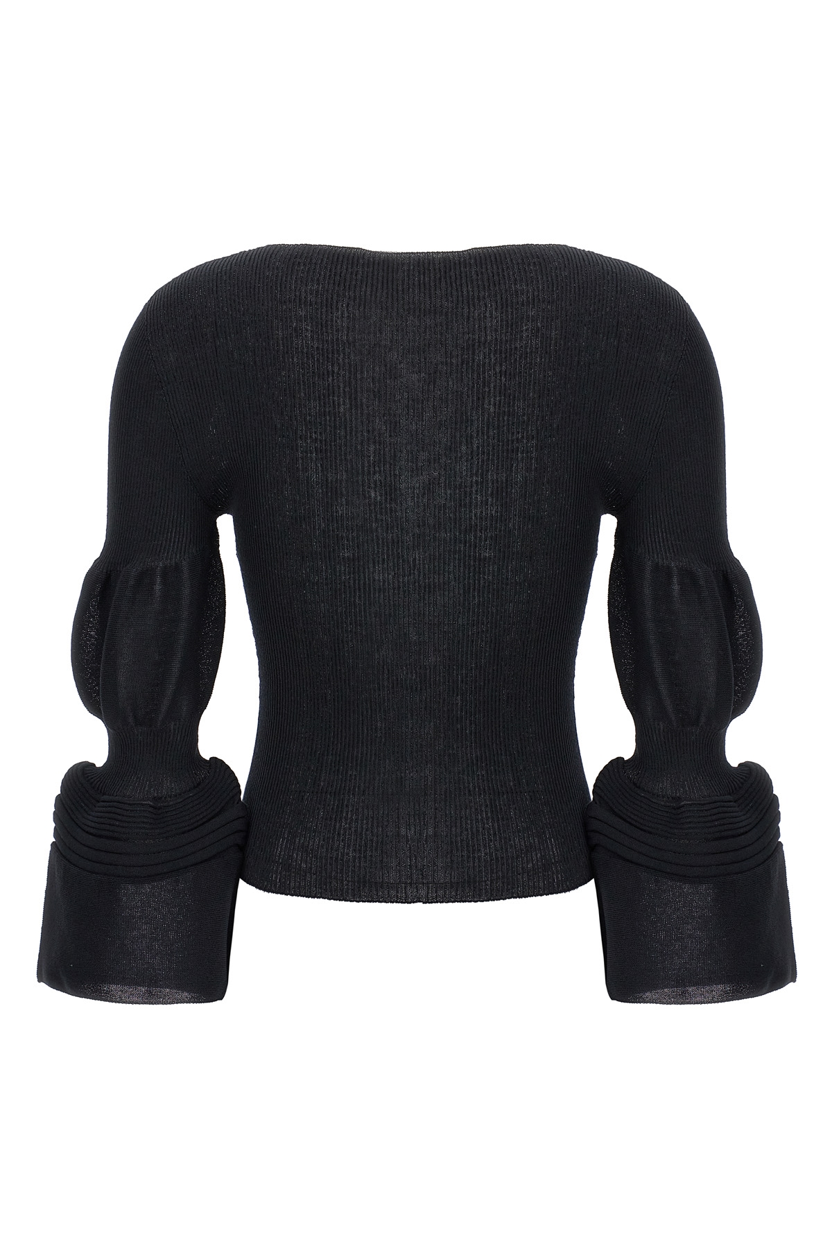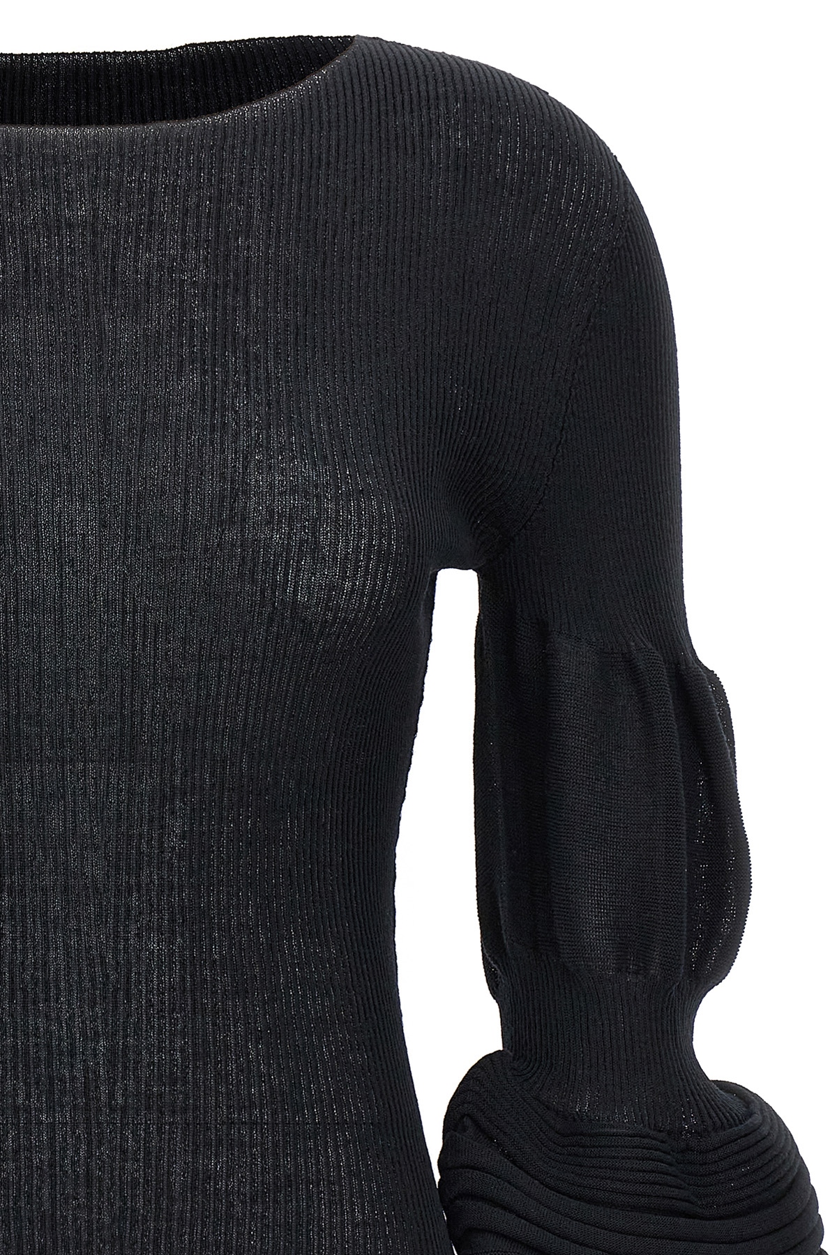 'Assemblage branch' ramie blend knit top with shaped long sleeves with puff effect. Round neck.