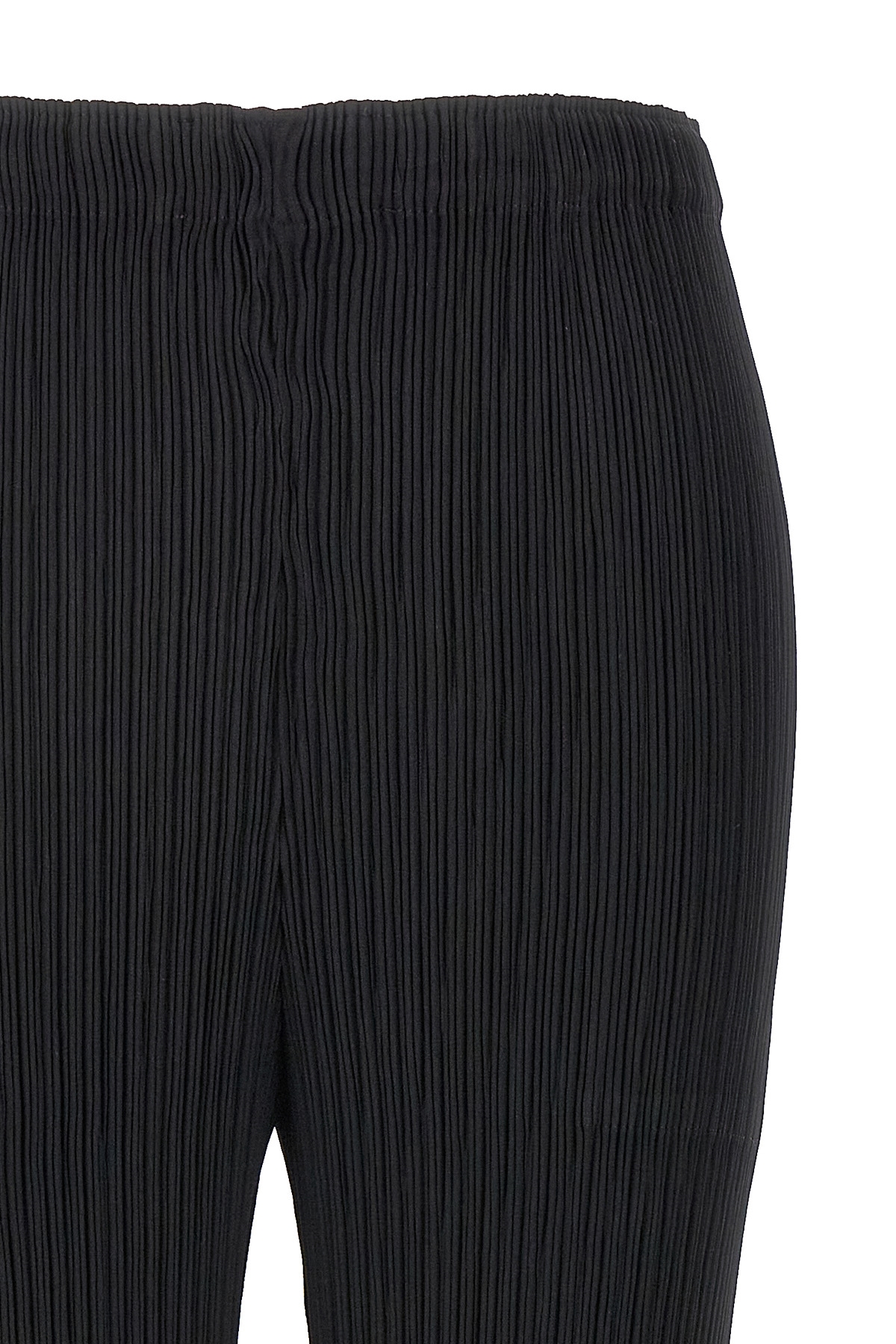 'Hatching pleats' pleated fabric pants, straight leg with elastic waistband.