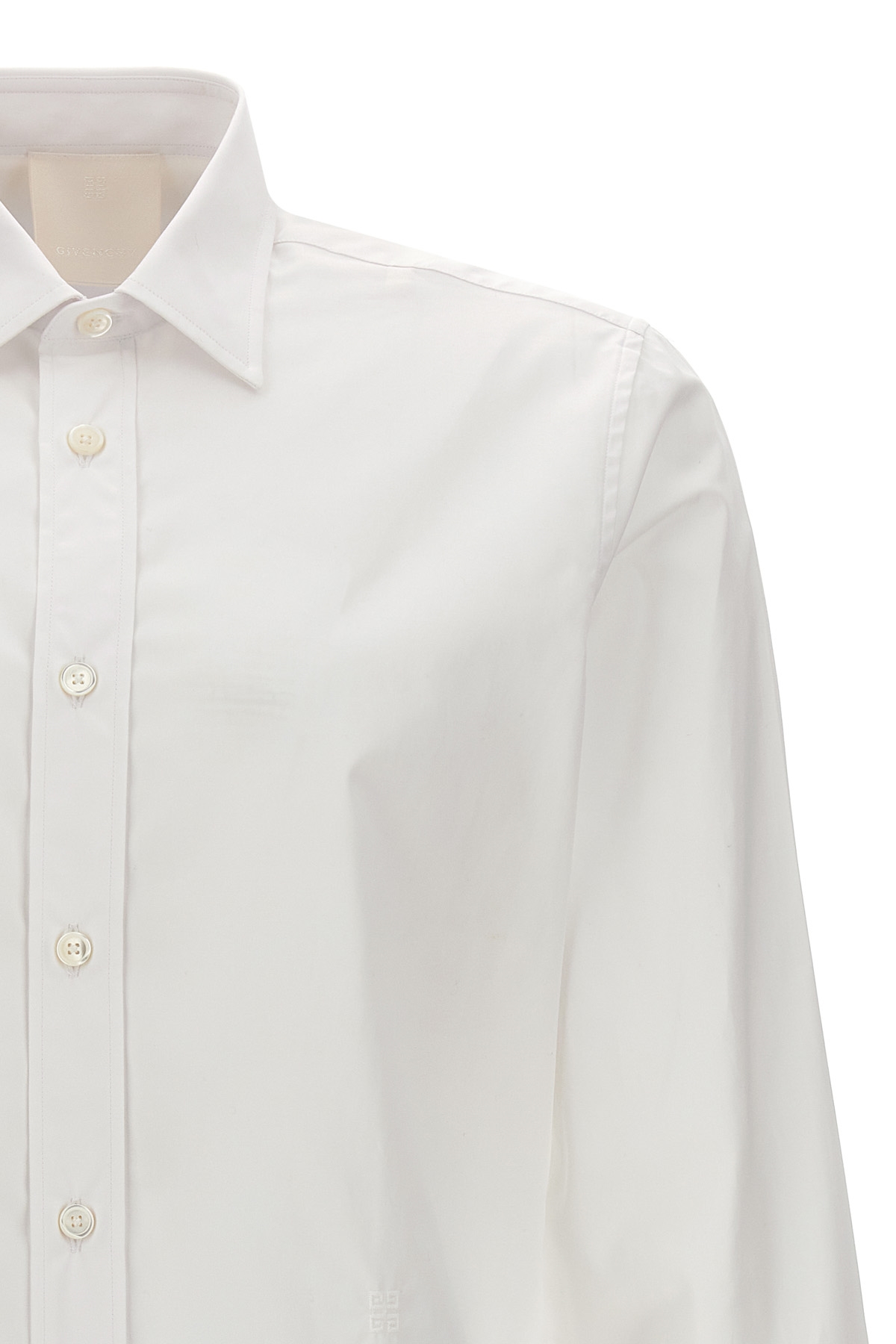 Cotton poplin shirt with tone-on-tone logo embroidery, button closure, long cuffed sleeves.