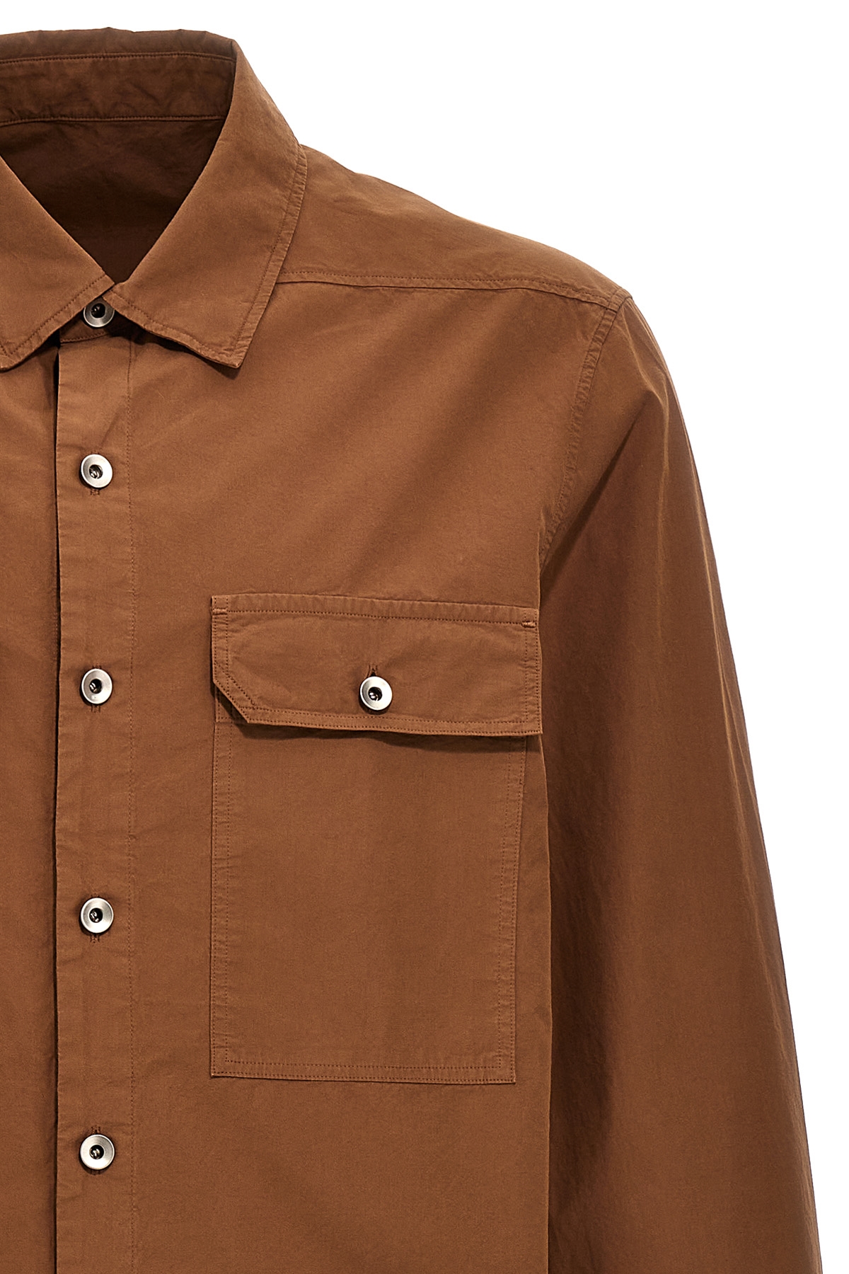 Cotton shirt with button closure, front pockets, long cuffed sleeves.