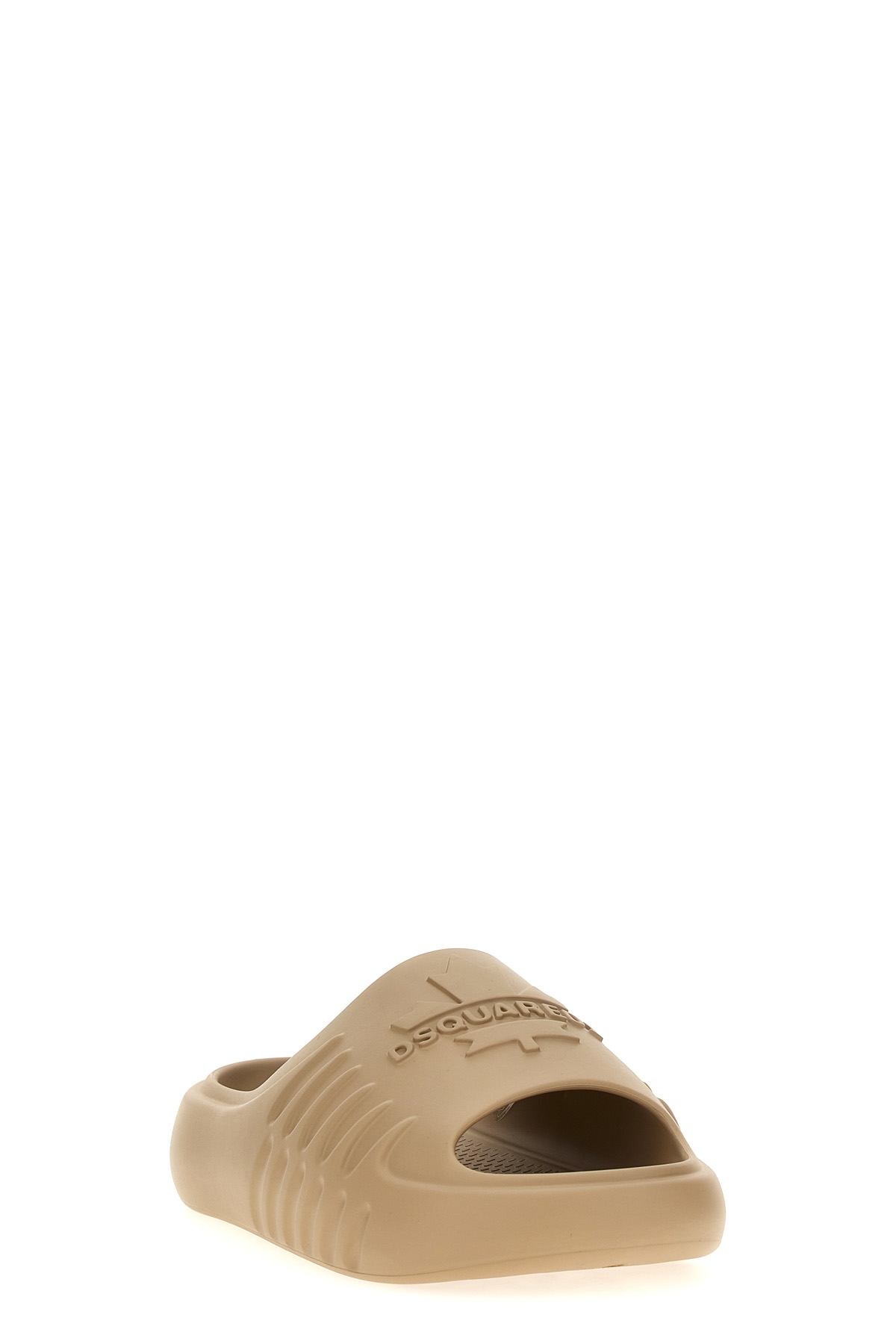 'Dsquared2 Leaf' rubber slides with logo.