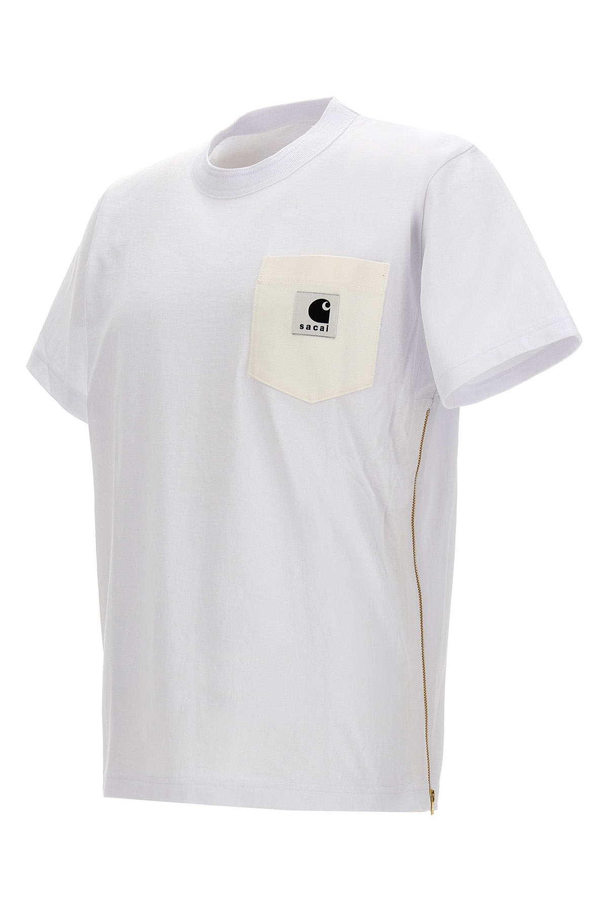 Sacai x Carhartt WIP cotton T-shirt with zip detail on the sides, crew neck, short sleeves, canvas pocket with front logo patch.