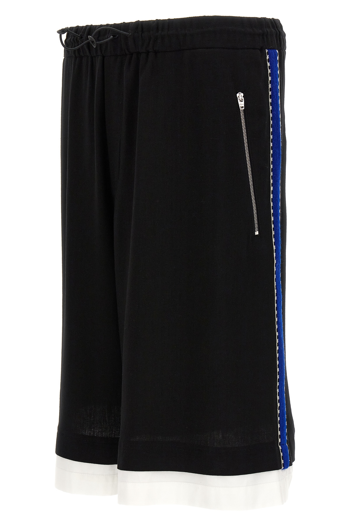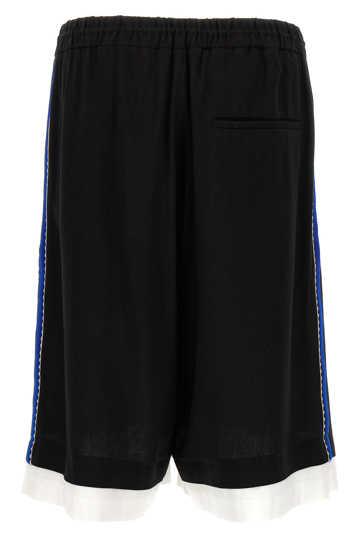 'Revelation' viscose linen blend bermuda shorts with double layer effect on the hem with cotton poplin part. Side trimmings, drawstring at the waist.