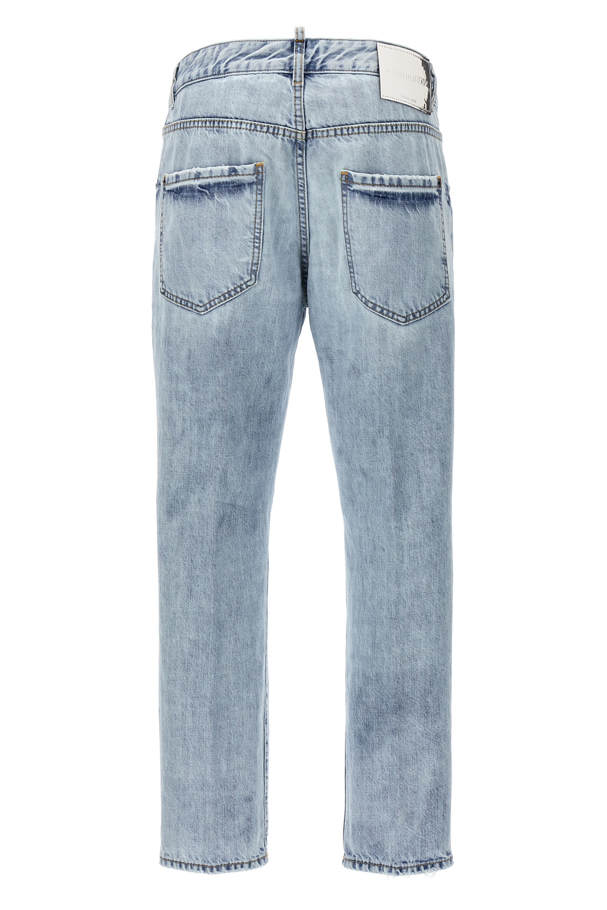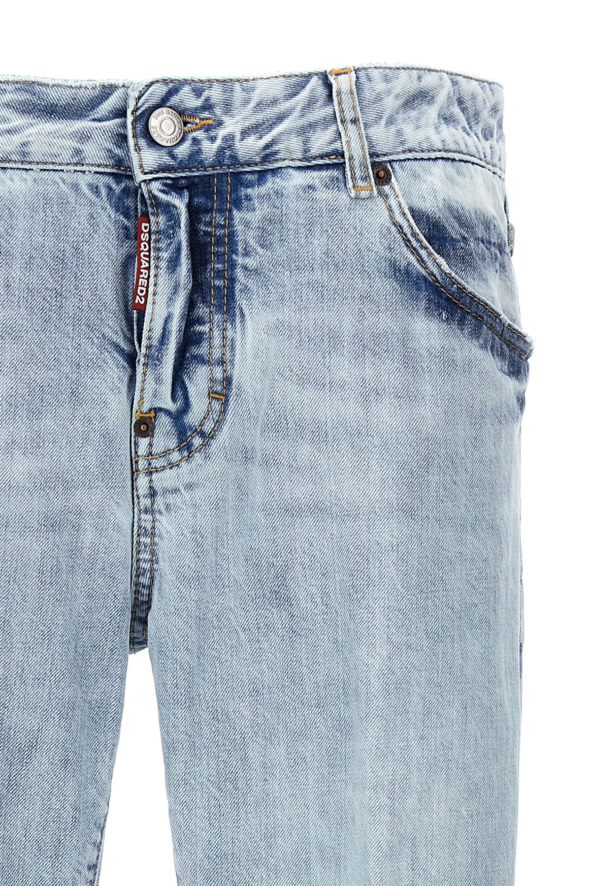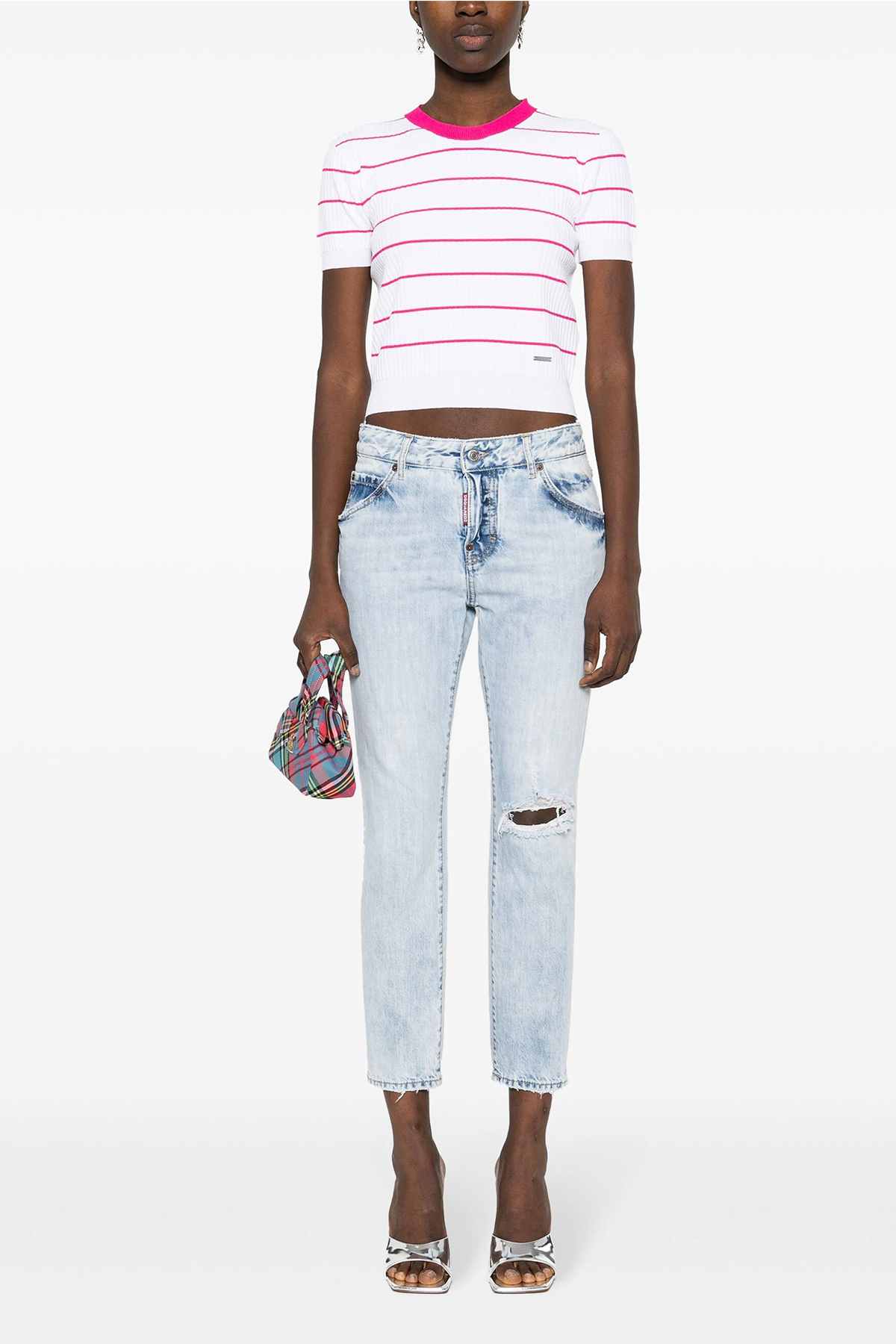 'Cool Girl' cotton denim jeans with used-effect details, button closure, five pockets, metallic leather logo tag.