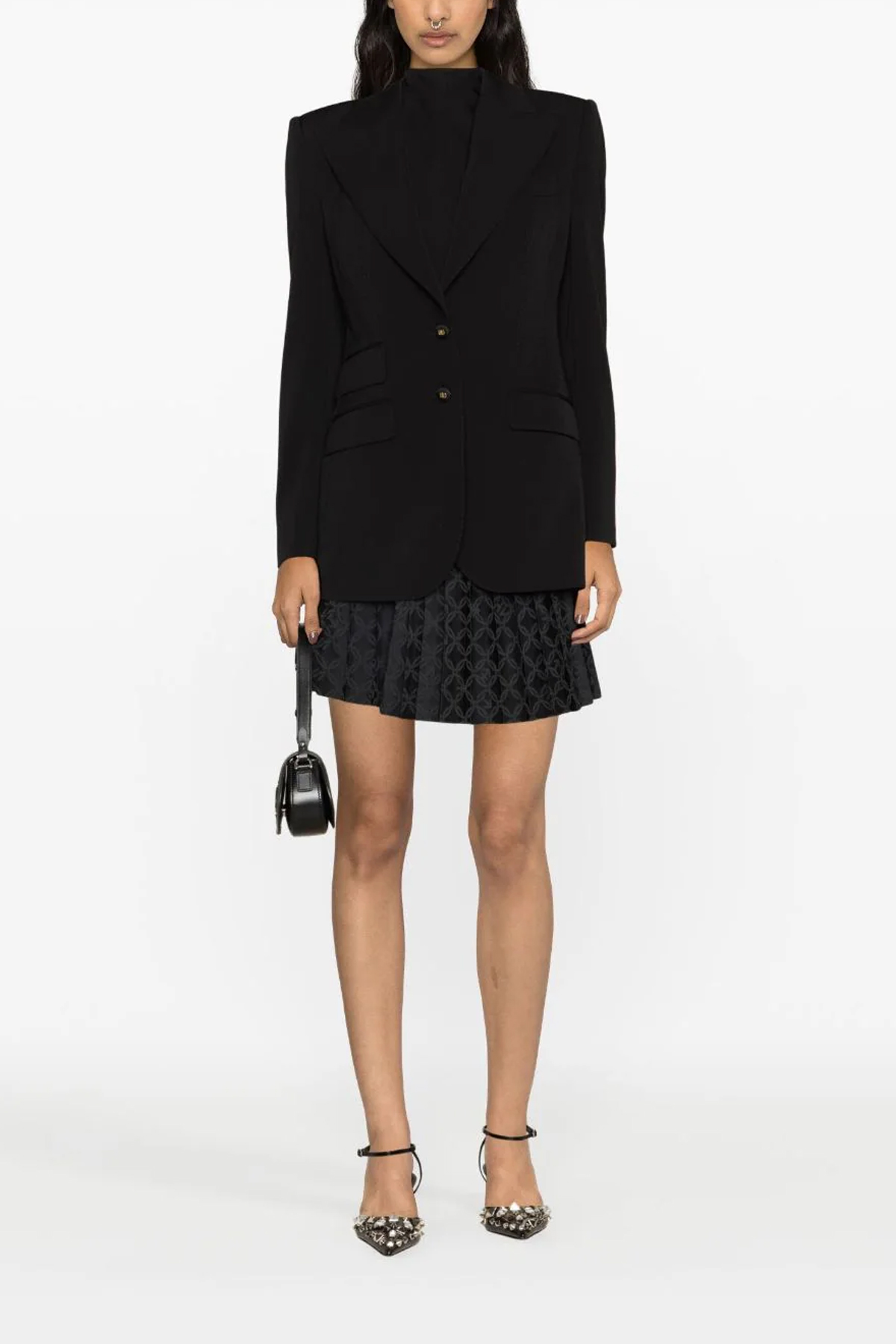 'Turlington' single-breasted bistretch wool cloth blazer with button closure, pockets, padded shoulders, long sleeves, back split.